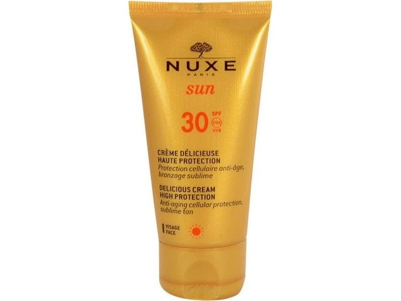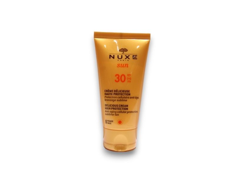 Nuxe Sun CrA me Delicieuse SPF30 Denne beroligende kremen med en ferieduft, en innovasjon fra Nuxe, garanterer en fortryllende 100 brunfarge i fred Den beskytter mot UV-AUVB for tidlig aldring av huden forårsaket av sollys og aktiverer en naturlig brunfarge Fukter og myker ideelt beskyttet hud får en strålende brunfarge Bruk Påfør sjenerøst før du går i solen