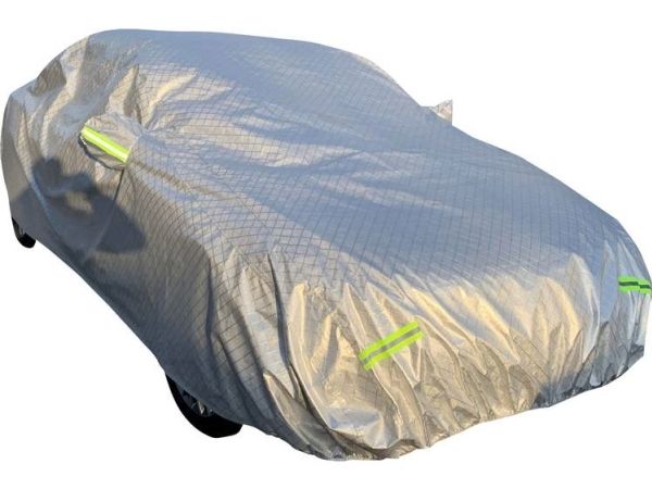 Helgaragen beskytter din faretøj sikkert mod regn, sne, støv, fuglekot og så videre. Jordbåndet sørger for sikkerheden selv ved kraftig vind. Pladsbesparende og praktisk pakket i praktisk opbevaringstaske med lynlås. Gummibåndet på forsiden og bagsiden sørger for en god pasform og sikker fastgørelse. I førerdøren er der en lynlås for nemt at åbne bilen. Ligeledes er garagen forsynet med reflektorer for front, hæk og udvendige spejle. Under den vandtætte overflade findes en blød fleece, som er meget lakskånende.