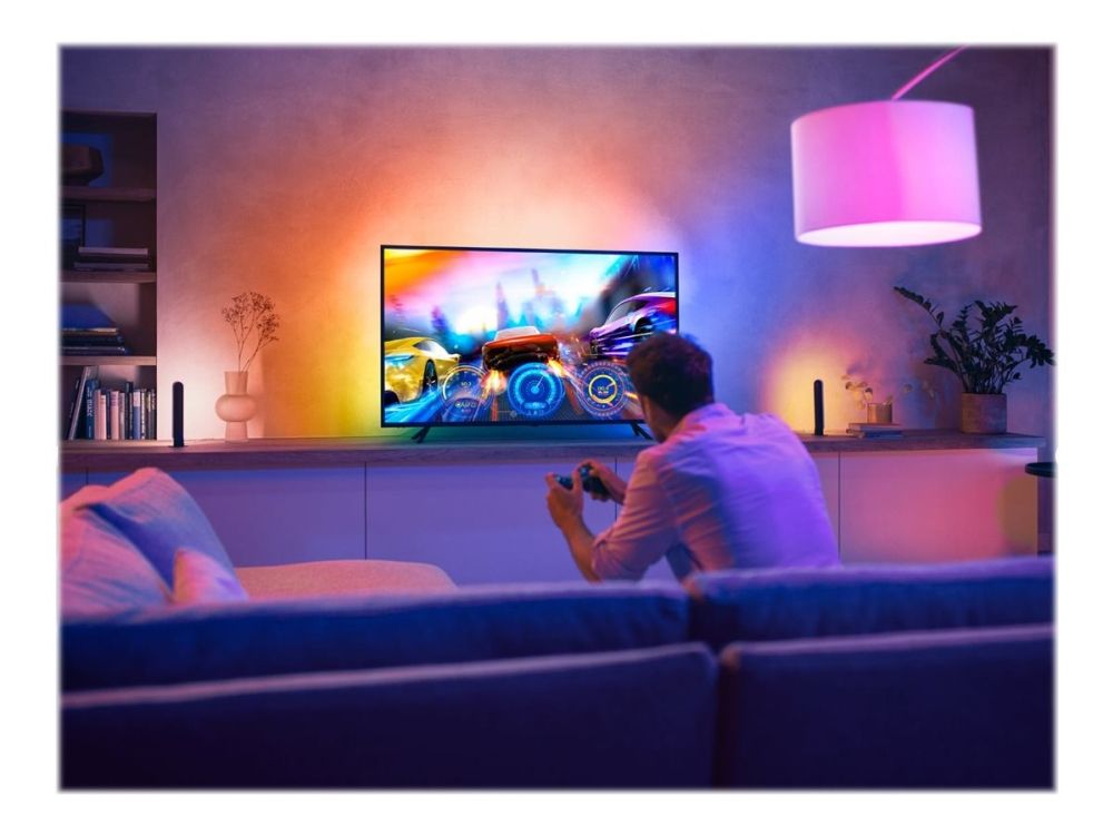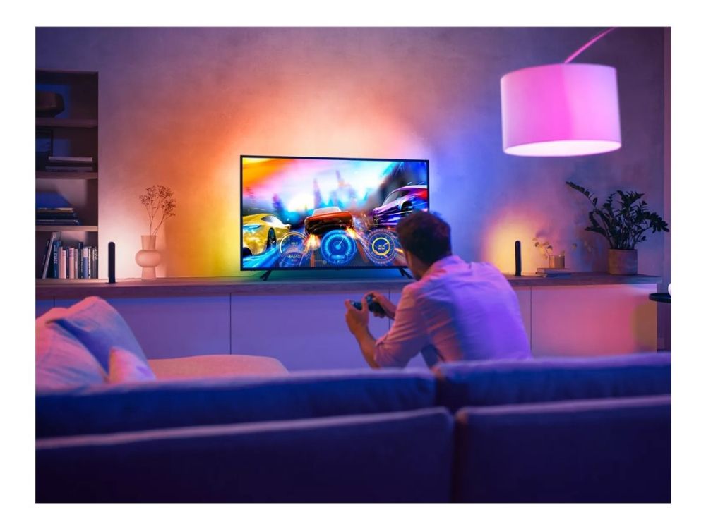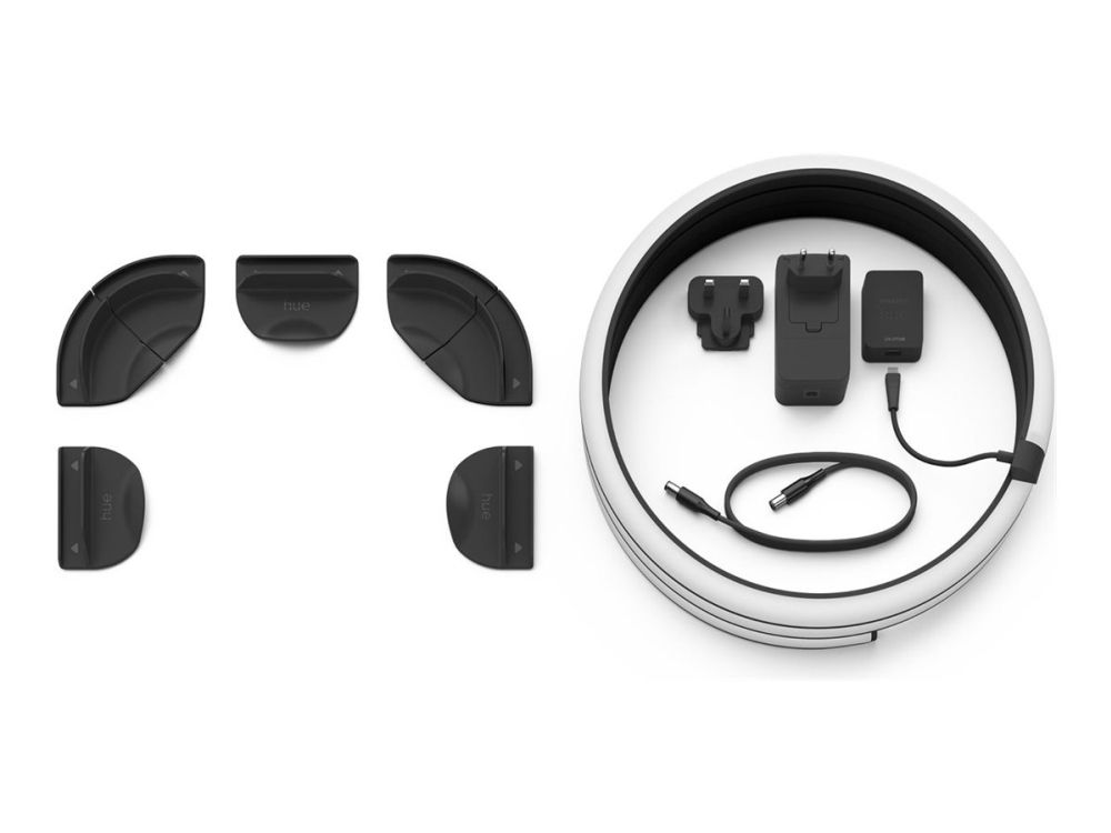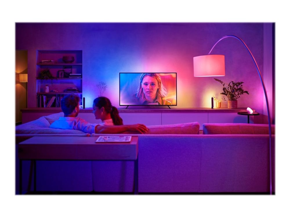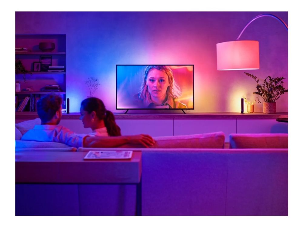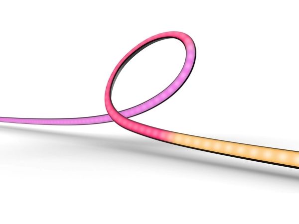 Philips Hue Play Gradient Lightstrip tilbyder en helt ny funktionalitet til dine tilsluttede Hue lyskilder, som er muligheden for individuelt at kontrollere hver LED-diode, hvilket skaber muligheden for at indstille en enkelt Lightstrip til flere forskellige farver på samme tid. Dette giver en enkelt Lightstrip mulighed for, at fylde hele rummet med lys, der fejlfri efterligner den underholdning, du ser på skærmen. Lightstripen er meget nem at installere og leveres i 3 forskellige længder, specielt lavet til tv'er i tre forskellige størrelser: 55 ”, 65” , og 75 ”. Hvis du vælger den rigtige længde til dit tv, kan du dække venstre og højre side såvel som toppen af ??skærmen med den samme lysstrimmel. Selvfølgelig, hvis du vil opnå den samme effekt andre steder i i rummet, kan en lightstrip også fastgøres til andre overflader efter eget valg. En Lightstrip kan ikke udvides eller udskæres for at gøre den kortere.