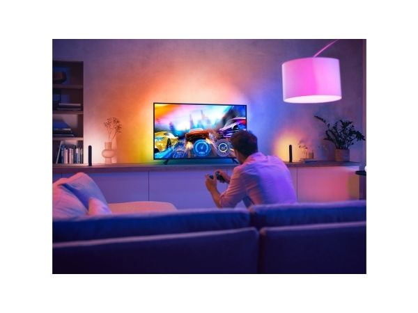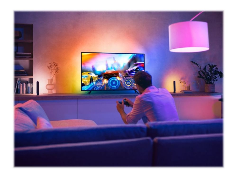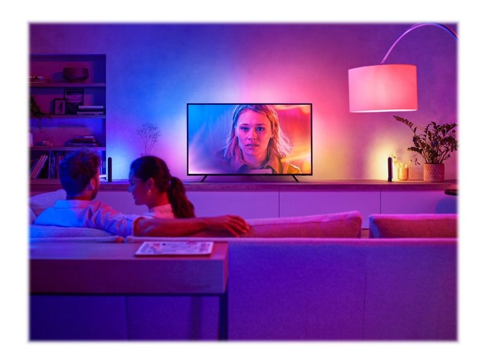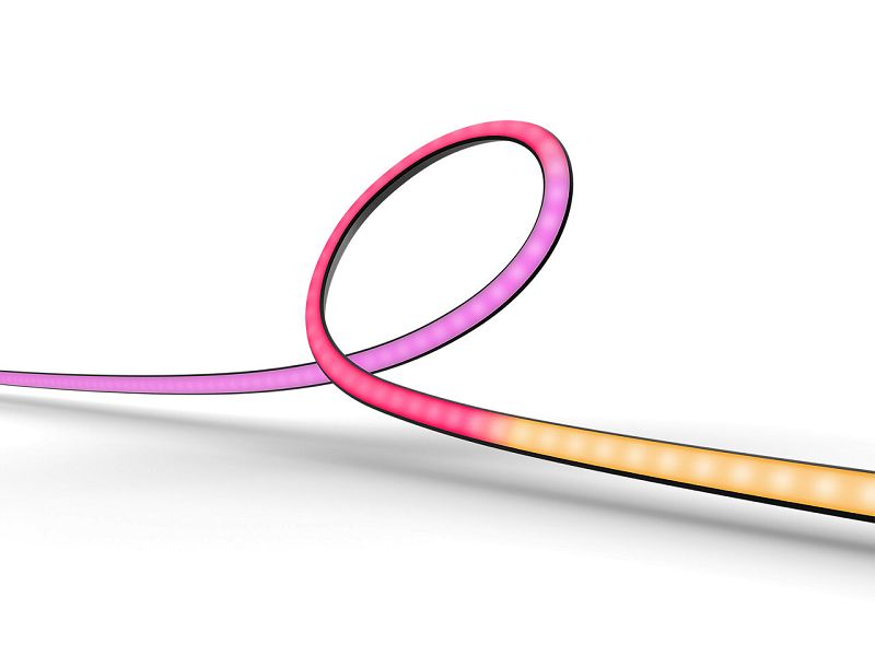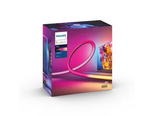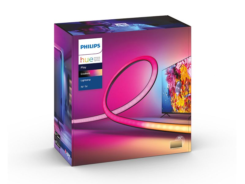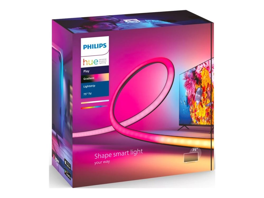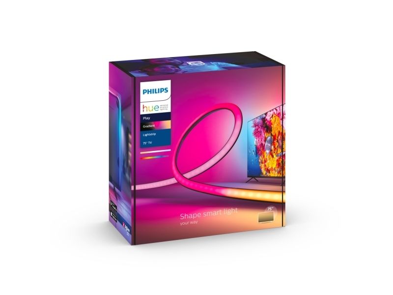 Philips Hue Play Gradient Lightstrip tilbyder en helt ny funktionalitet til dine tilsluttede Hue lyskilder, som er muligheden for individuelt at kontrollere hver LED-diode, hvilket skaber muligheden for at indstille en enkelt Lightstrip til flere forskellige farver på samme tid. Dette giver en enkelt Lightstrip mulighed for, at fylde hele rummet med lys, der fejlfri efterligner den underholdning, du ser på skærmen. Lightstripen er meget nem at installere og leveres i 3 forskellige længder, specielt lavet til tv'er i tre forskellige størrelser: 55 ”, 65” , og 75 ”. Hvis du vælger den rigtige længde til dit tv, kan du dække venstre og højre side såvel som toppen af ??skærmen med den samme lysstrimmel. Selvfølgelig, hvis du vil opnå den samme effekt andre steder i i rummet, kan en lightstrip også fastgøres til andre overflader efter eget valg. En Lightstrip kan ikke udvides eller udskæres for at gøre den kortere.