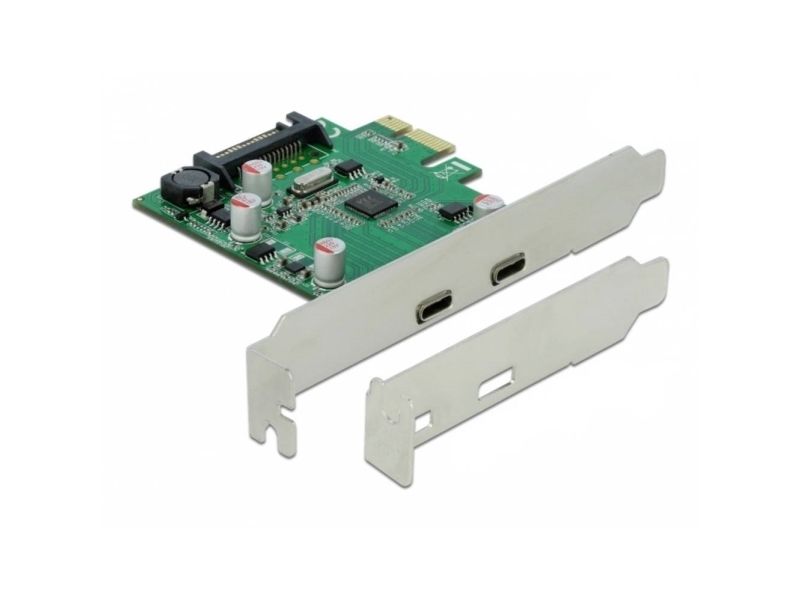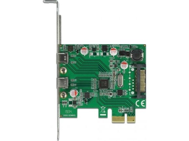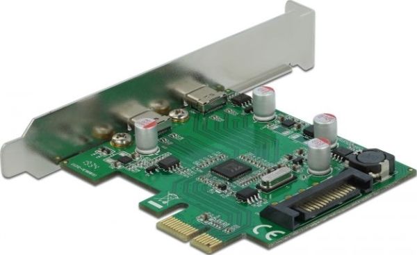 This PCI Express card by Delock expands the PC by two external USB-C ports. Different USB devices, such as docking stations, card readers, external enclosures etc., can be connected to the card.