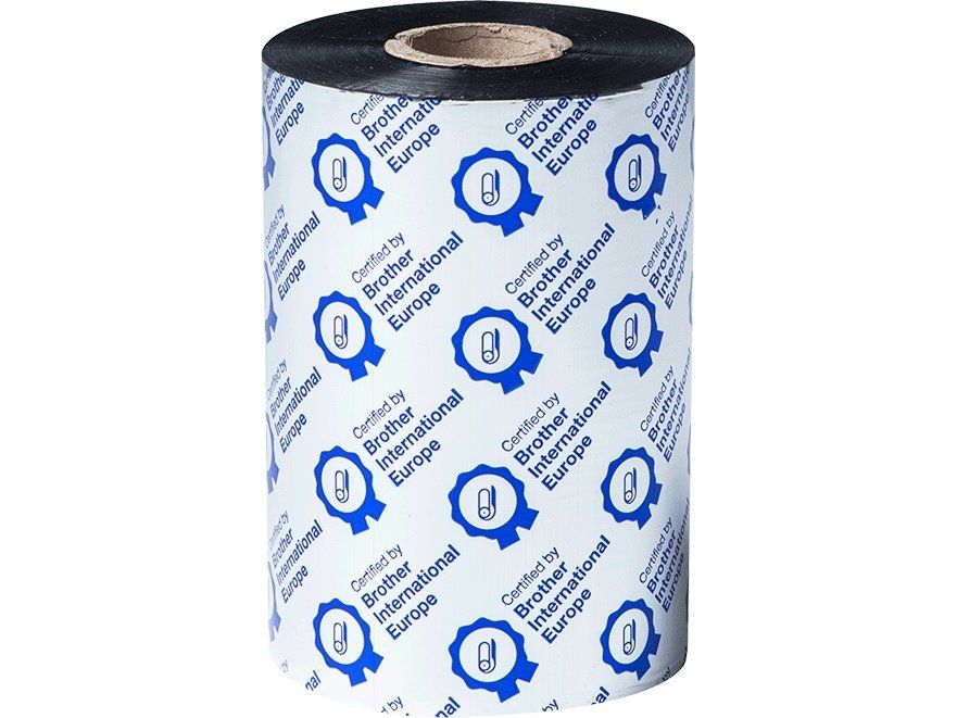 BWP1D450110 sort bånd i premium voks for termisk overføringsteknologi er kostnadseffektive og brukes sammen med kompatible etikettruller i din Brother TJ industrielle etikettskriver.