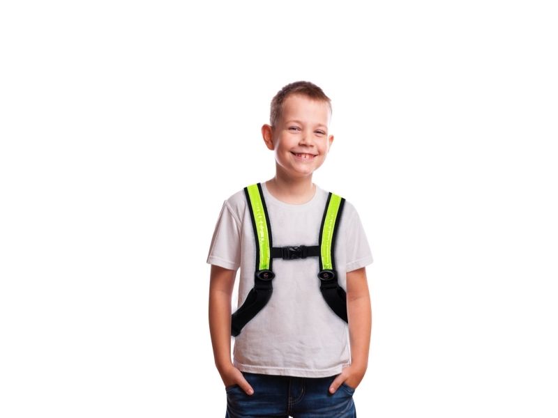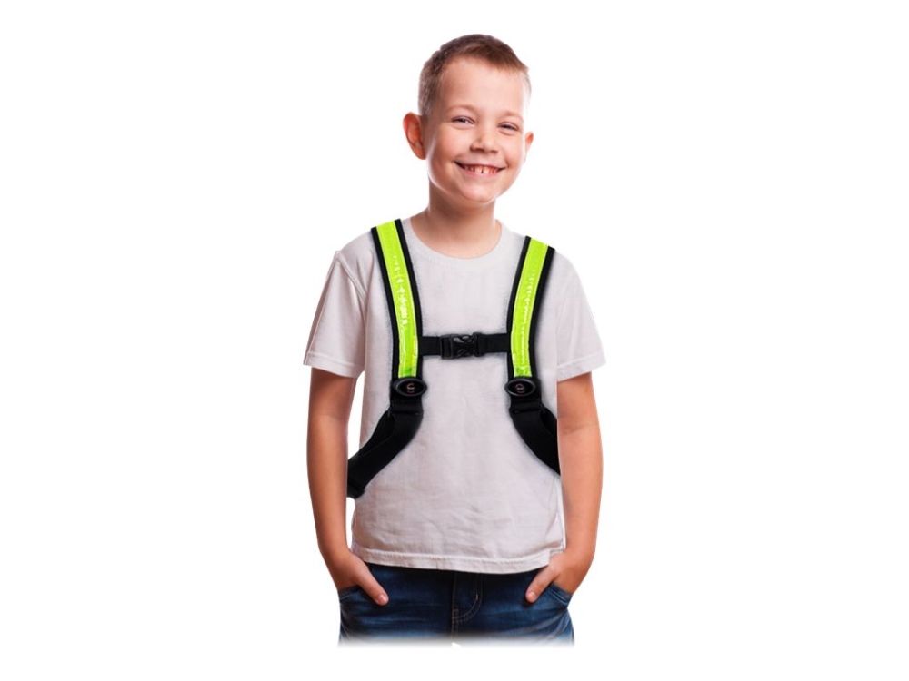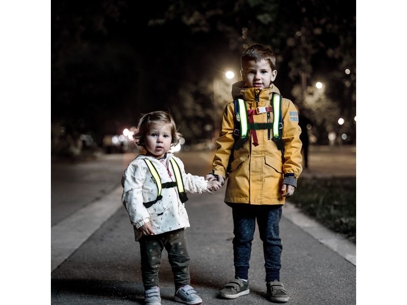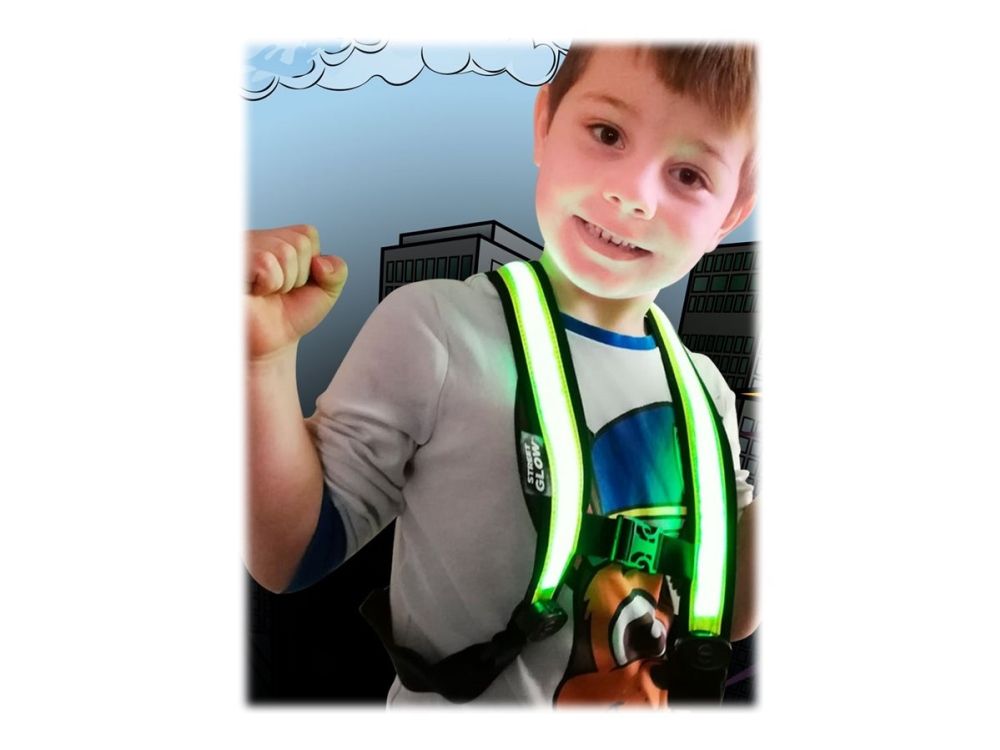 StreetGlow is a battery-powered luminous vest designed to improve visibility in low-light conditions. With extra-bright LEDs it ensures your child stands out from the surroundings while improving the road safety.