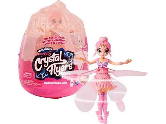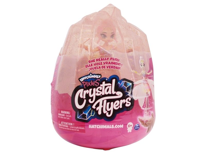 Have you ever wished your Hatchimals Pixies could fly? Now you can bring Pixies to life with Crystal Flyers, the first-ever Hatchimals Pixies that can really fly with your help! Inside a gorgeous crystal egg, discover a beautiful grown-up Pixie, with glittery wings and a unique look and style. Remove your Crystal Flyers Pixie from her egg and charge her with the included USB cable. When she’s fully charged, she’s ready to air dance! Switch your Pixie on and watch as her glittery wings begin to flutter and spin. Let her go and she’ll magically fly – use your Pixie Power to guide her! Featuring a built-in sensor, your Crystal Flyers Pixie can sense where your hands are as you help her to fly indoors. Lift your hands high and she’ll fly high, move them low and she’ll fly low, dancing through the air! As she hovers above your hands, her glittery wings sparkle as she flies! With enough practice, you and your Pixie are on your way to becoming the best air dancers in Hatchtopia! Mid-flight, you can safely grab your Pixie’s legs to reposition her. Made of durable and safety tested materials, if you accidentally touch her wings while she’s flying, it’s completely safe – with an auto-stop feature, she’ll stop flying right away. When she’s not flying, display your Pixie inside her sparkly clear crystal egg! With two gorgeous Crystal Flyers available, Krystalina Rose and Violet Onyx, choose the Pixie that fits your style (each sold separately)! Crystal Flyers toys for girls are the perfect gifts for kids aged 6 and up. Bring your very own Hatchimals Pixie to life with Hatchimals Pixies Crystal Flyers! The magic is in your hands!