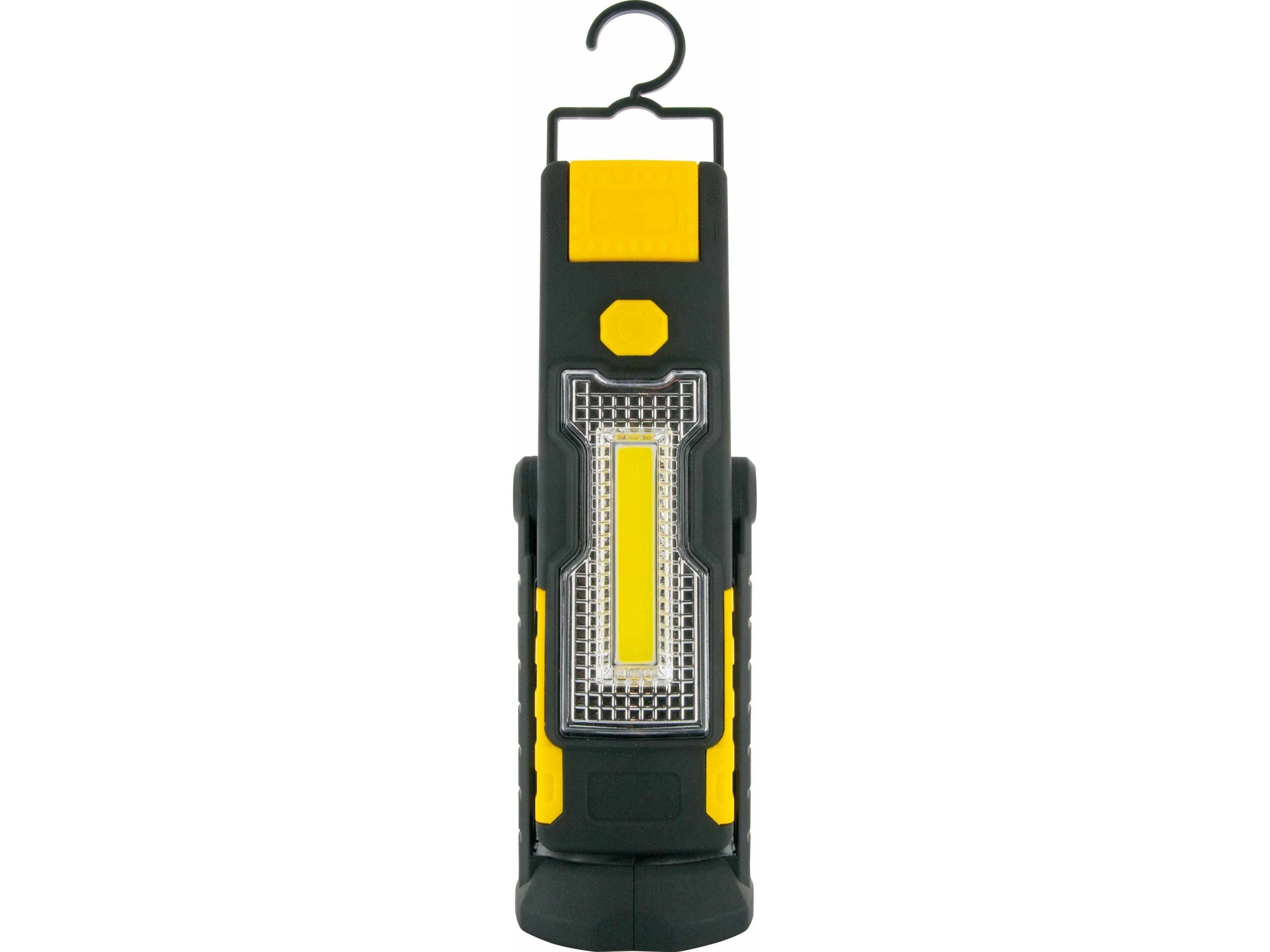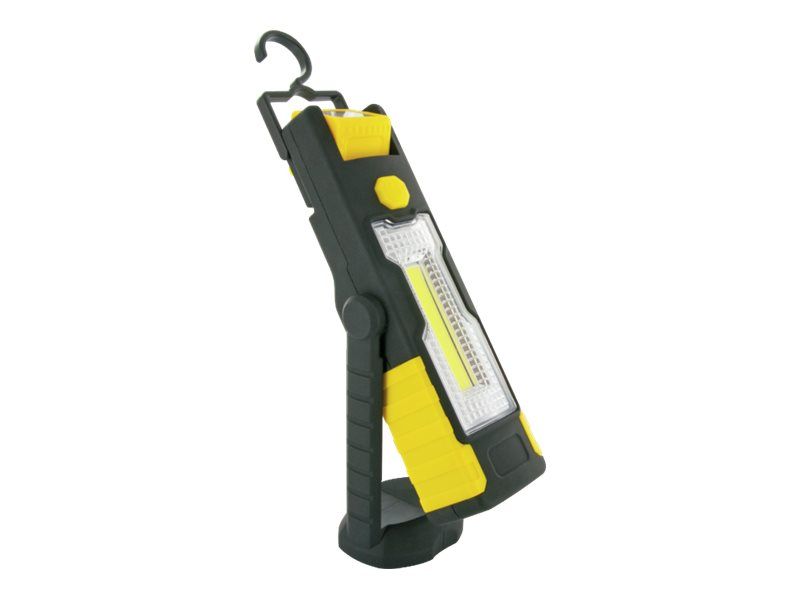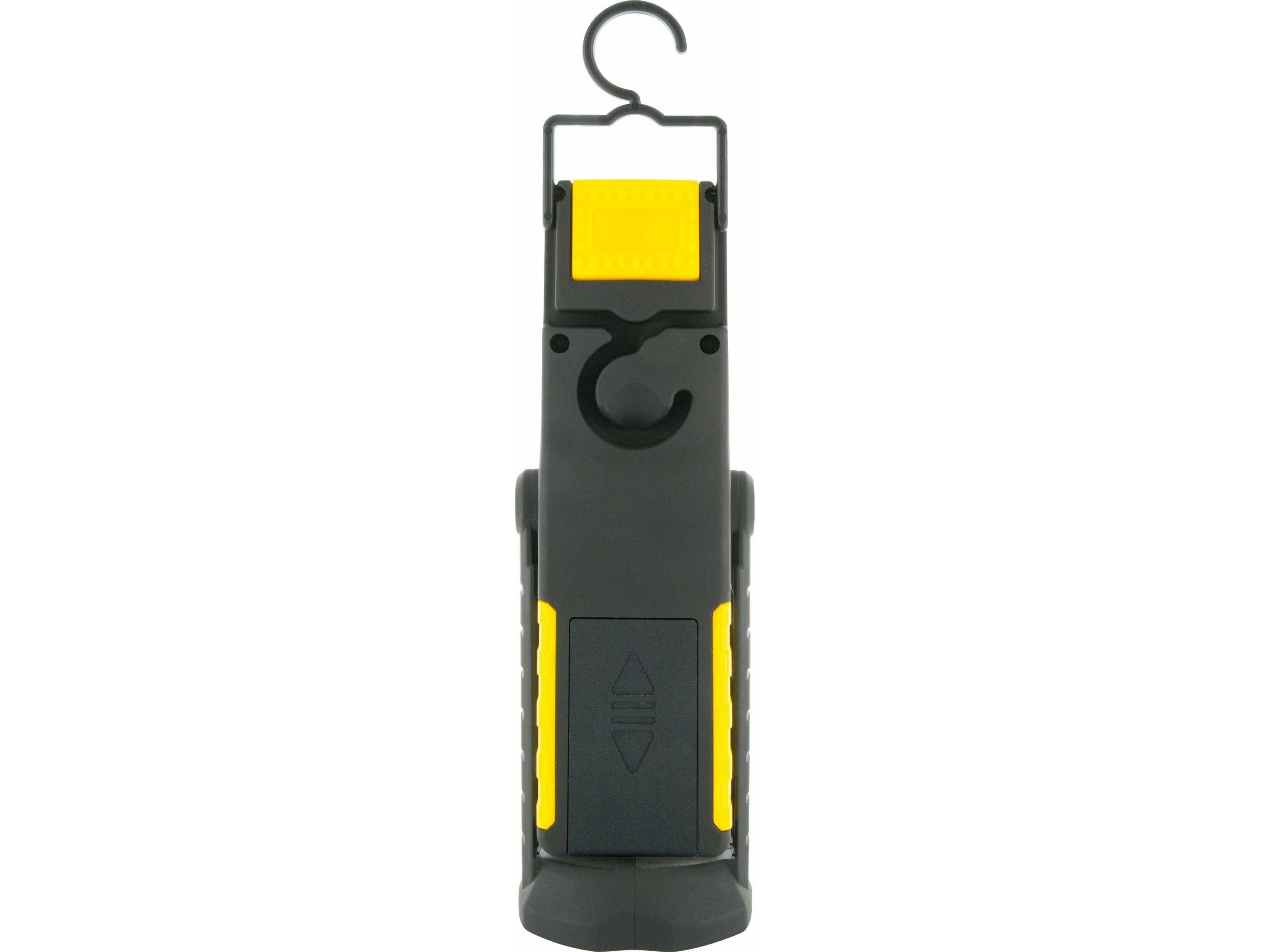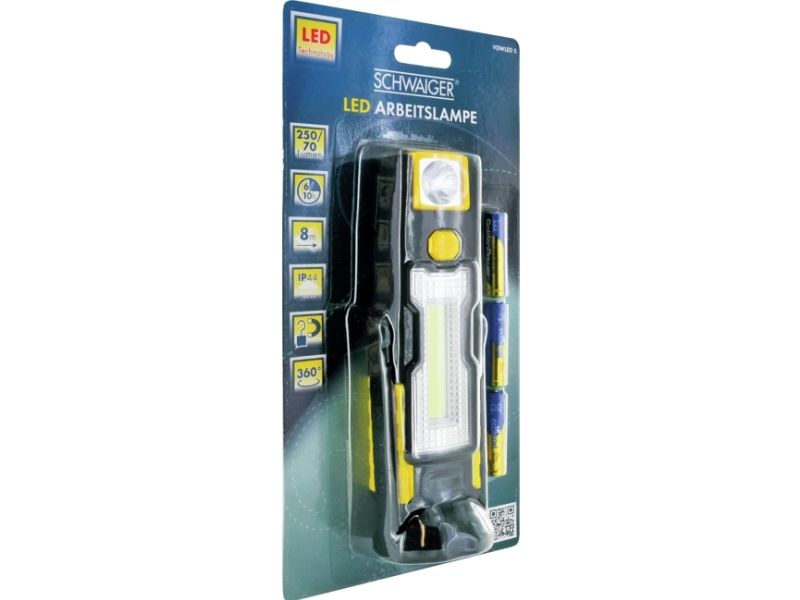 This Schwaiger LED work light is a must for every workshop or household. The powerful COB (Chip-on-Board) LED provides bright light, independent of the electricity network. The lamp can be rotated by 270° and be switched from using the front light to using the top light. The lamp is equipped with a practical and strong magnetic mount and a hook for hanging in order to allow for doing unrestricted work. This lamp is perfect for usage in installation work, while doing car repairs, camping or in emergencies.