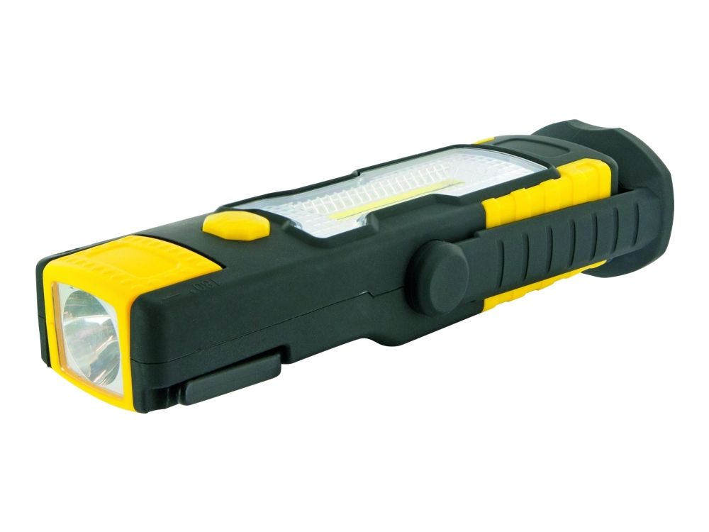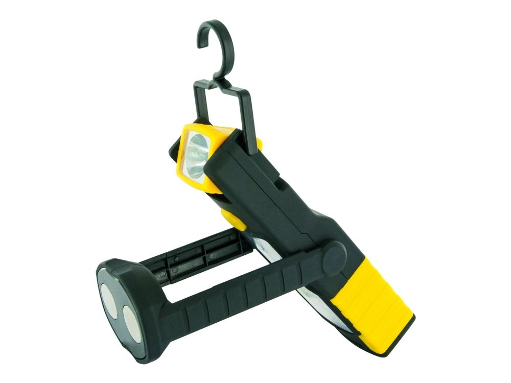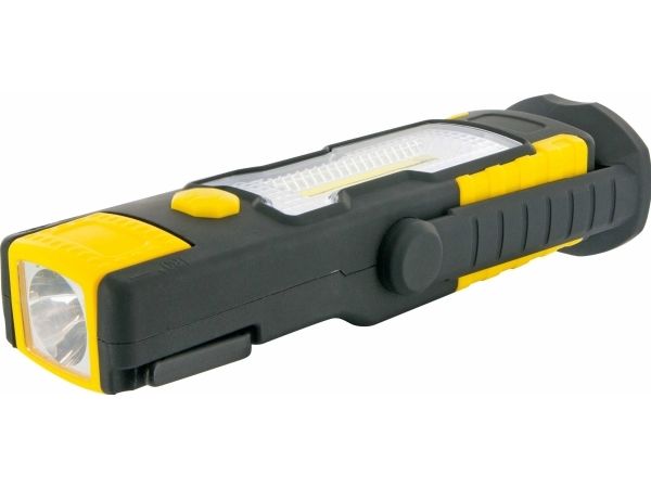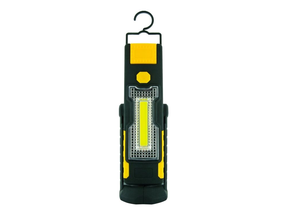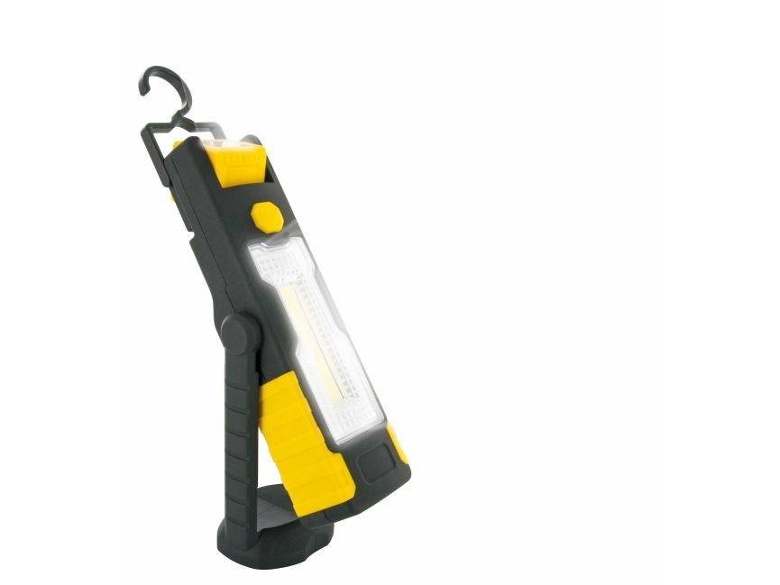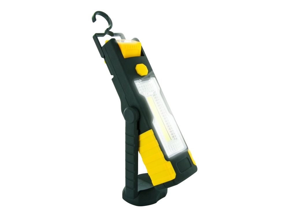 This Schwaiger LED work light is a must for every workshop or household. The powerful COB (Chip-on-Board) LED provides bright light, independent of the electricity network. The lamp can be rotated by 270° and be switched from using the front light to using the top light. The lamp is equipped with a practical and strong magnetic mount and a hook for hanging in order to allow for doing unrestricted work. This lamp is perfect for usage in installation work, while doing car repairs, camping or in emergencies.