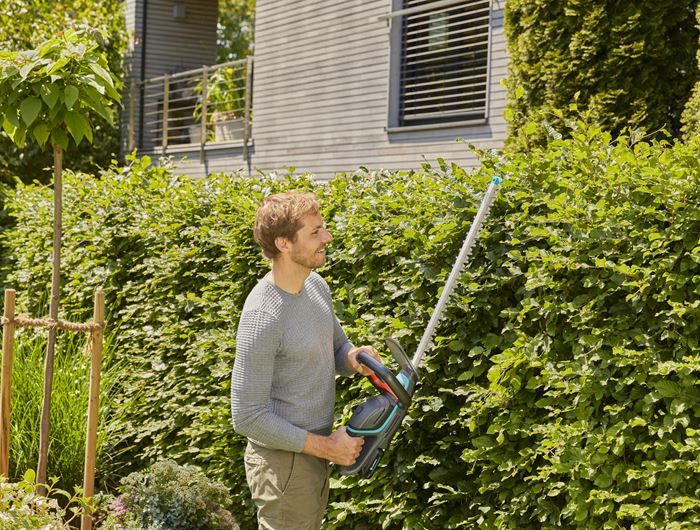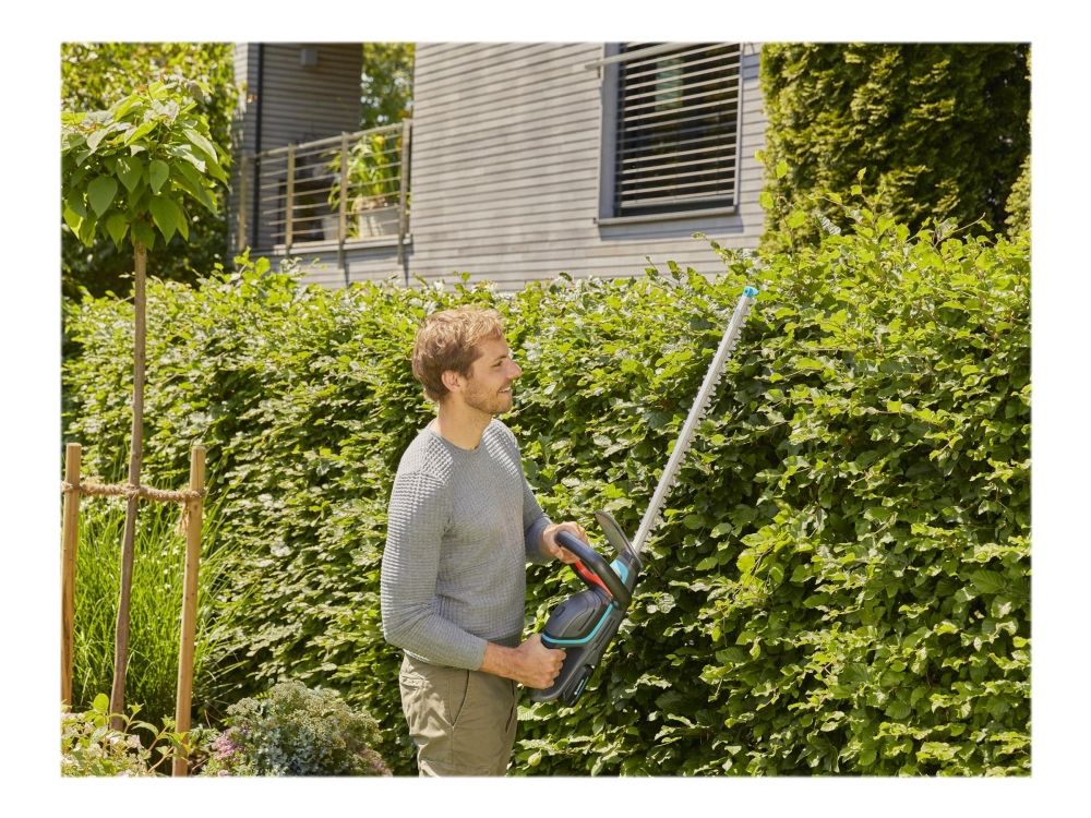 Cordless, convenient, lightweight and easy to use: With the GARDENA Battery Hedge Trimmer ComfortCut 60/18V P4A, you can trim medium-sized hedges without much effort at all. Thanks to a clearly visible LED indicator directly on the tool, you are always aware of the current charge level, so you’ll know when it is time to take a break to either charge it or connect another battery. The Hedge Trimmer is compatible with all batteries from the 18V POWER FOR ALL ALLIANCE. Depending on the type of battery used, the product can reach a battery run time of up to 135 minutes and cut up to 450 square metres of hedge. With its ErgoLine handle with integrated switch, the shears with a blade length of 60 centimetres always fit comfortably in your hand, no matter what position you are working in. When cutting close to the ground or along walls, the impact protection at the tip of the blade ensures that the blades are not damaged. The blade geometry is perfectly designed so that the cut is always clean and the work is easy to perform – without interruptions. We know you’ll be impressed with the results! With the ComfortCut, hedge trimming is no longer a tiresome, strenuous chore, but one that can be completed in no time at all. The GARDENA Battery Hedge Trimmer ComfortCut 60/18V P4A solo is supplied without a battery and charger. It is compatible with all 18V batteries from the POWER FOR ALL ALLIANCE, one of the largest multi-brand battery alliances of leading manufacturers. These batteries can be used for numerous devices around the house and garden. So you save money and remain flexible! Passion powered by GARDENA – Battery garden equipment that gives you the freedom to create.