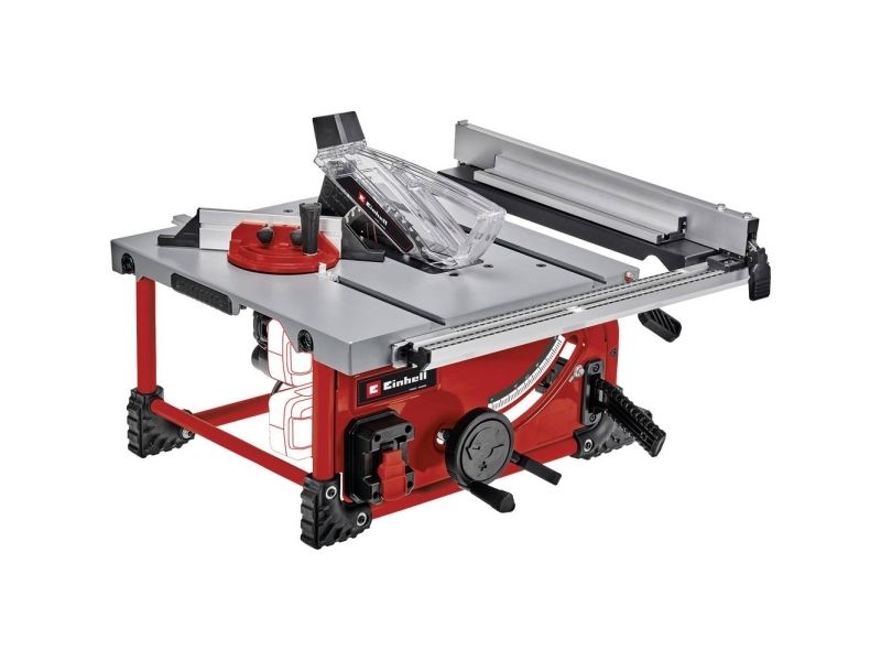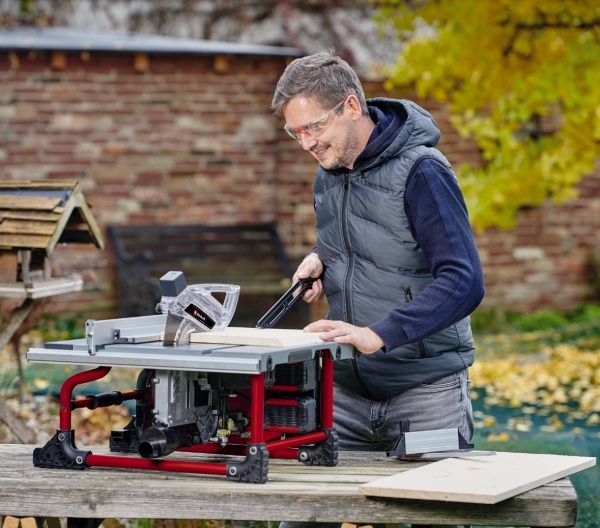 The Einhell bench-type circular saw is an ideal basic tool for anyone performing woodworking jobs. The bench-type circular saw is designed for sizing and cross-cutting work on softwood and hardwood. The sturdy aluminium table is light and torsion-resistant and has perfect sliding properties. For wider workpieces the table has pull-out width extensions on the right-hand side. As a small and compact tool the bench-type circular saw can also be integrated in small worksheds or hobby rooms and is ideal for mobile use too. The soft start function protects both the motor and the gear unit against false starts. The infinitely height adjustable saw blade ensures safe operation. The ultra-sturdy parallel stop ensures exact longitudinal cuts. The product is supplied complete with an angle stop for precise miter cuts from -60 to +60° degrees. The saw blade can be tilted continuously up to 45° to the left for miter cuts. Also included is a high-grade carbide saw blade which was specially developed for cordless saws. For a clean workplace free of dust and sawdust there are extractor connections on the housing and saw blade guard. Holders are provided on the housing for stowing away all the attachments on the equipment.