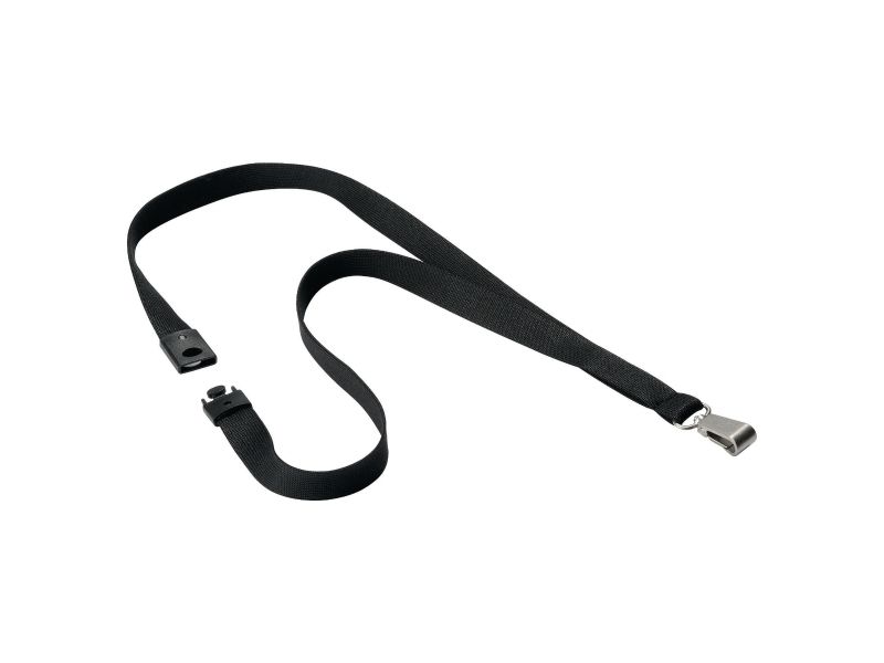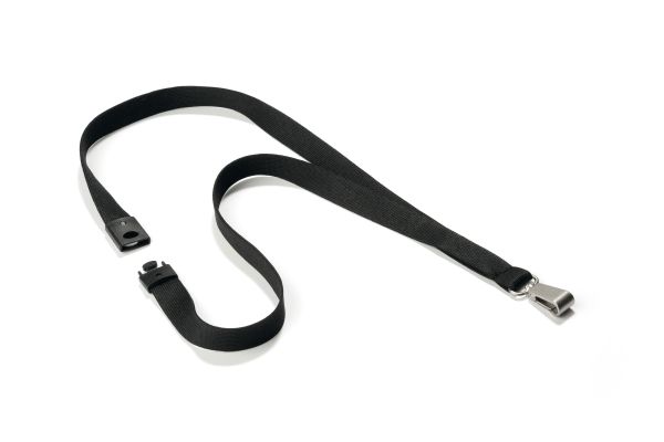 Premium halsbånd af silkeagtig stof og sikkerhedsmekanisme der åbner, hvis halsbåndet bliver fanget. Den 12 mm brede karabinhage af metal passer til alle kortholdere og kongresmærker med udstansede brede huller. Designet af karabinhagen sikrer at kortholderen hænger i den rigtige position og kan læses. Længde 44 cm, bredde 1,5 cm.