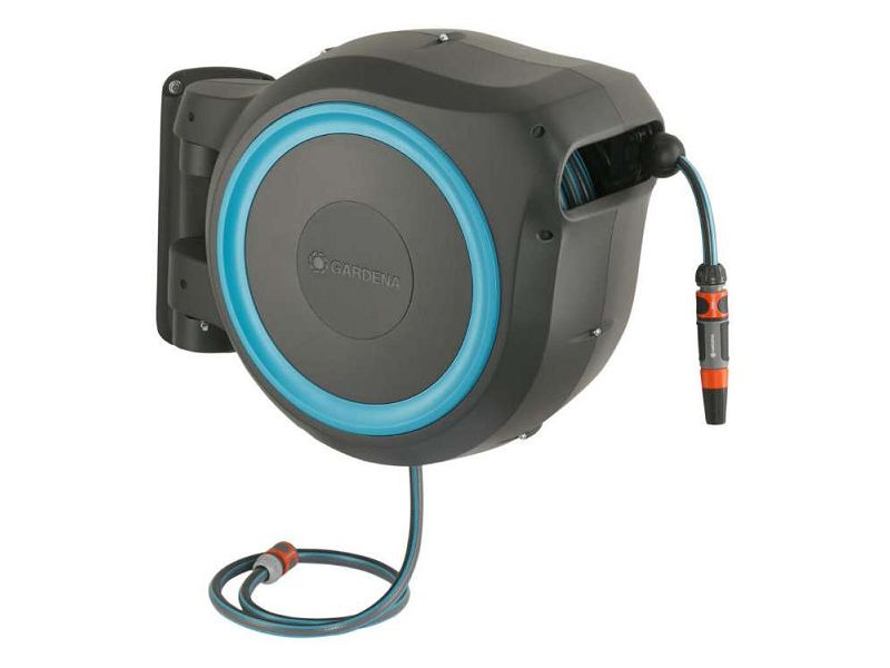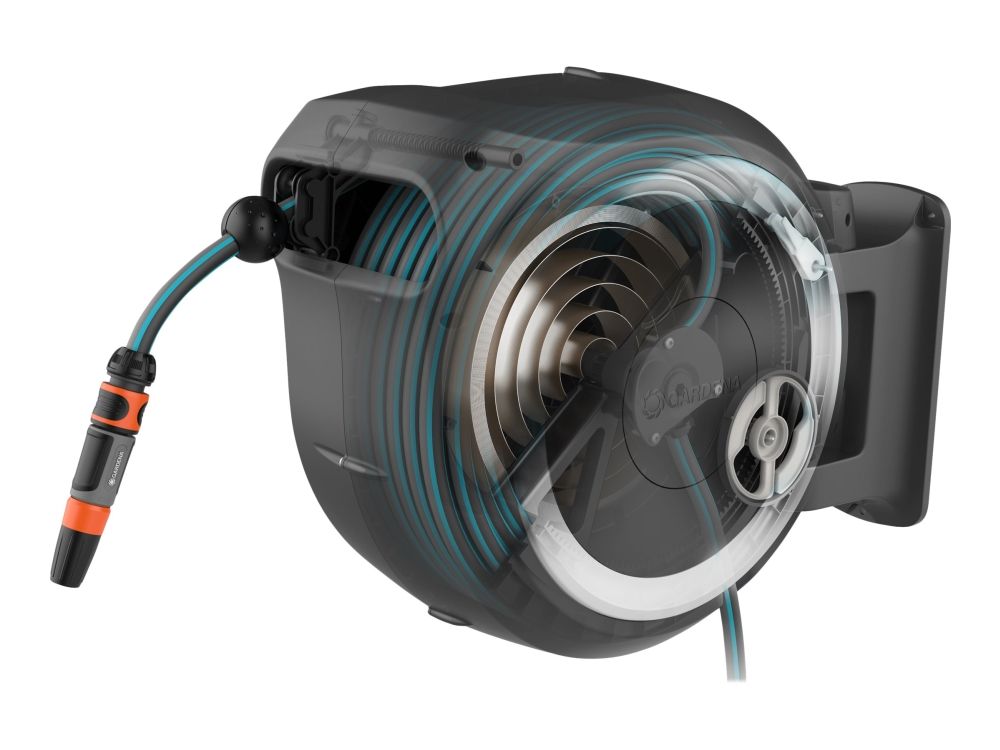 Thanks to the innovative RollControl technology, the retraction is particularly safe and controlled. The high-quality material is UV- and frost-proof, protected from weather damage, and can therefore be used all year round. In addition, the hose storage is secured with an anti-theft device.