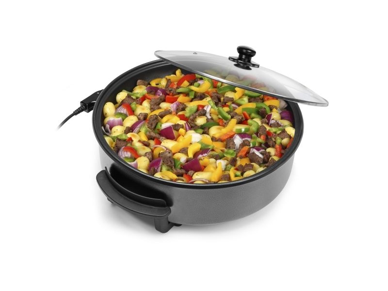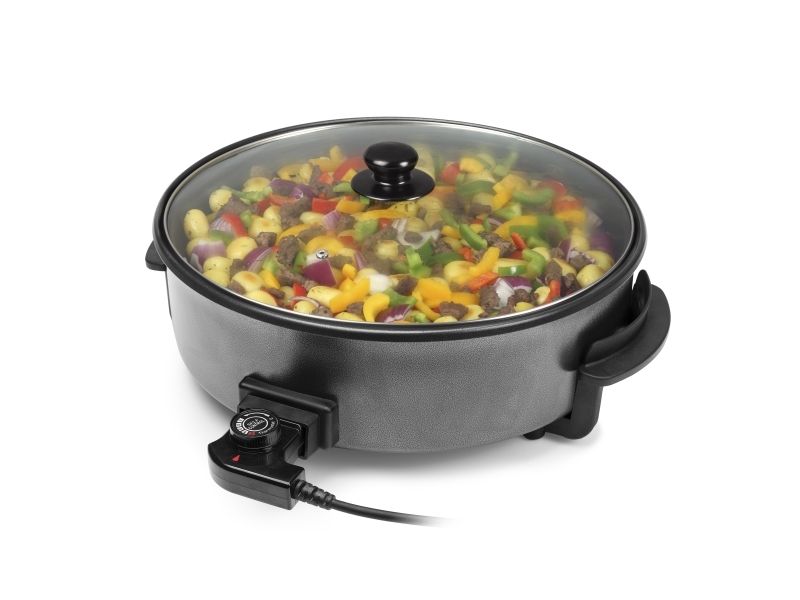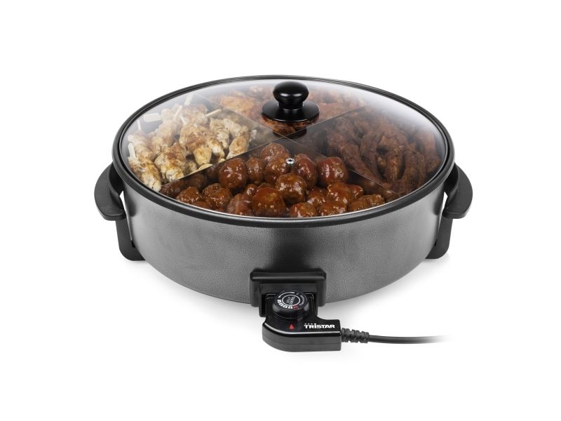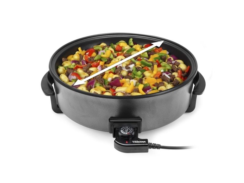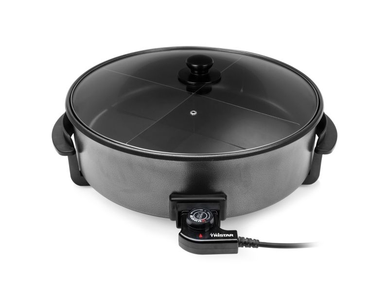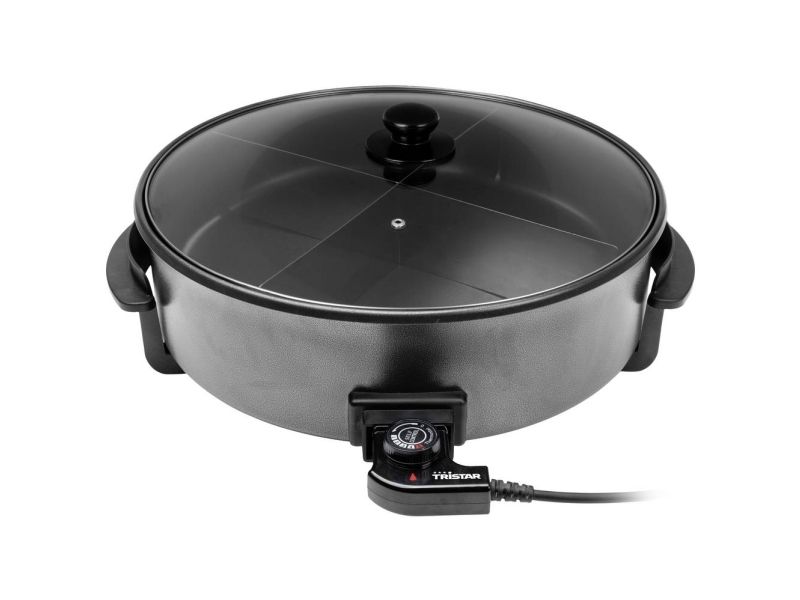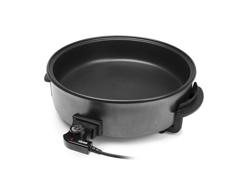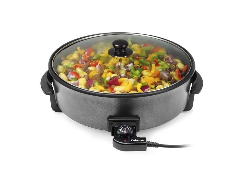 Tristar electric pan, dividing accessory, lid with steam exhaust, adjustable thermostat, removable power cord, manual