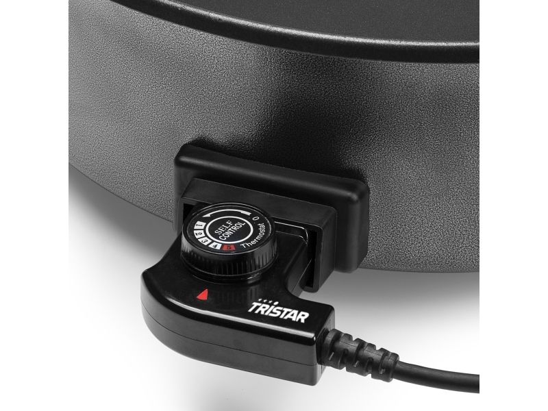 The Tristar electric pan has 1500 Watt Power with which the pan reaches its desired temperature quickly and can reach up to 250°C. You can use the electric pan in five different temperature settings so you always have the best temperature for each meal. The indicator light shows you at a glance if the pan is ready to use.