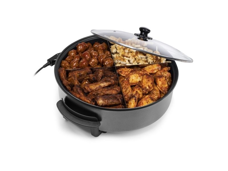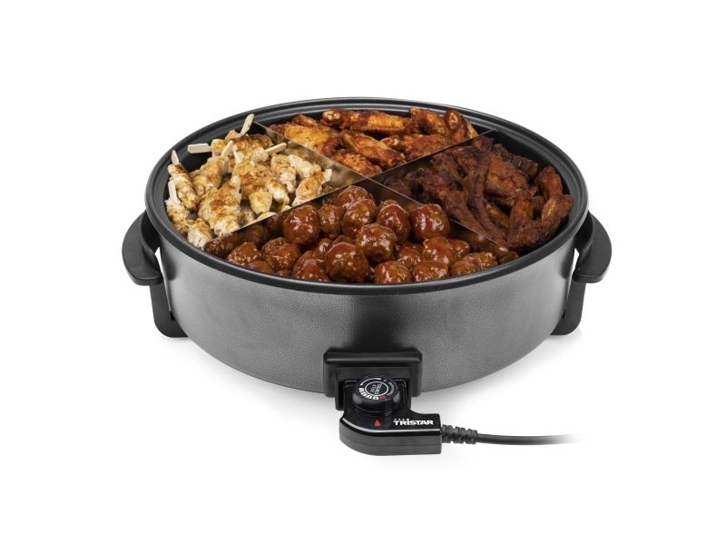 The Tristar electric pan can be used for many different purposes. When you just fall short of a pan, this pan is ideal to use as an extra pan. You can use the pan to heat your meals, make pancakes in or keep snacks warm during a party. Because of the divider accessory you can easily make four meals at the same time, this way you are much more efficient in the kitchen.