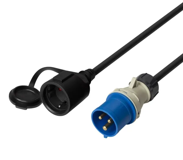 Įžemintas adapterio laidas DELTACO IP44, 230 V 16 A, 1 m, juodas / DEL-124