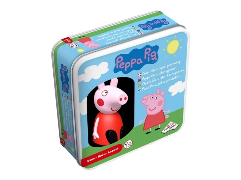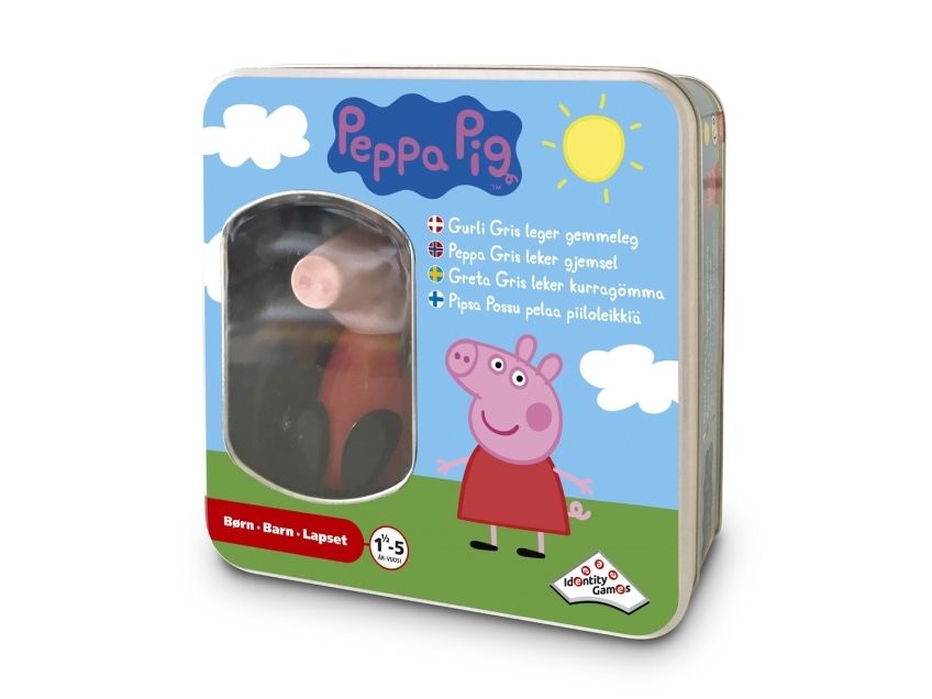 Lek gjemsel med Peppa Gris hjemme i stuen. Finn et skjulested for Peppa og aktiver henne. Etter en stund begynner hun å lage lyder, og leken kan starte.