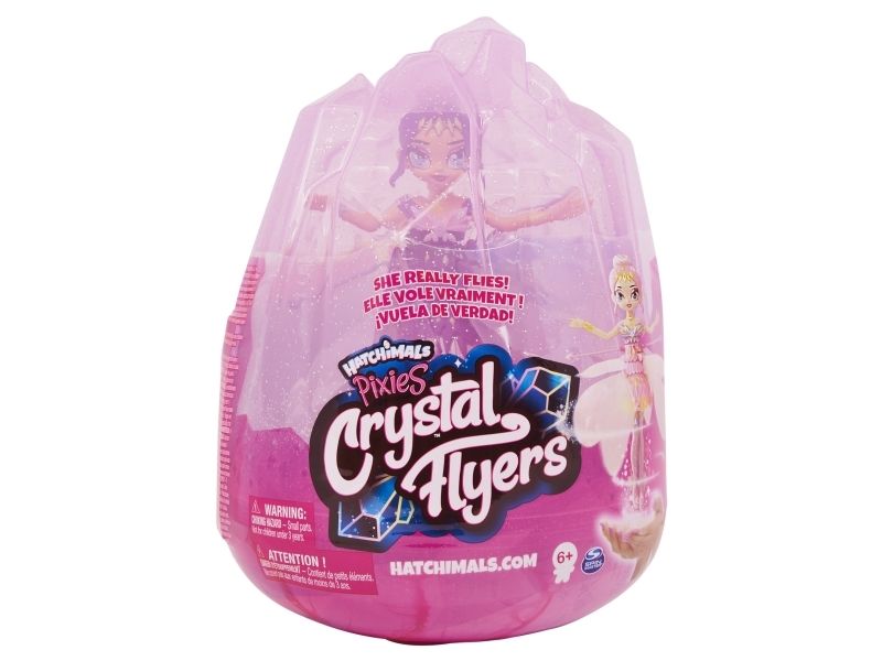 Have you ever wished your Hatchimals Pixies could fly? Now you can bring Pixies to life with Crystal Flyers, the first-ever Hatchimals Pixies that can really fly with your help! Inside a gorgeous crystal egg, discover a beautiful grown-up Pixie, with glittery wings and a unique look and style. Remove your Crystal Flyers Pixie from her egg and charge her with the included USB cable. When she’s fully charged, she’s ready to air dance! Switch your Pixie on and watch as her glittery wings begin to flutter and spin. Let her go and she’ll magically fly – use your Pixie Power to guide her! Featuring a built-in sensor, your Crystal Flyers Pixie can sense where your hands are as you help her to fly indoors. Lift your hands high and she’ll fly high, move them low and she’ll fly low, dancing through the air! As she hovers above your hands, her glittery wings sparkle as she flies! With enough practice, you and your Pixie are on your way to becoming the best air dancers in Hatchtopia! Mid-flight, you can safely grab your Pixie’s legs to reposition her. Made of durable and safety tested materials, if you accidentally touch her wings while she’s flying, it’s completely safe – with an auto-stop feature, she’ll stop flying right away. When she’s not flying, display your Pixie inside her sparkly clear crystal egg! With two gorgeous Crystal Flyers available, Krystalina Rose and Violet Onyx, choose the Pixie that fits your style (each sold separately)! Crystal Flyers toys for girls are the perfect gifts for kids aged 6 and up. Bring your very own Hatchimals Pixie to life with Hatchimals Pixies Crystal Flyers! The magic is in your hands!