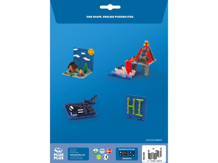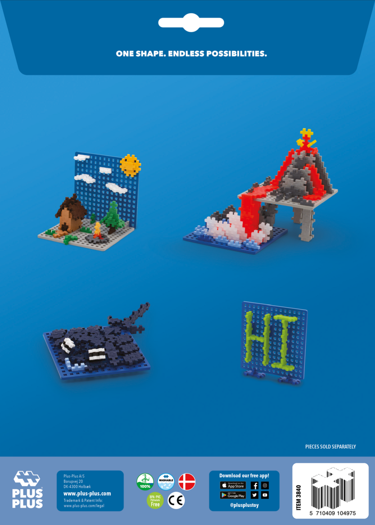 Hver Plus-Plus® er 20mm x 12mm og designet og produsert i Danmark. Alle Plus-Plus® er helt fri for Bisfenol A (BPA) og alle ftalater.