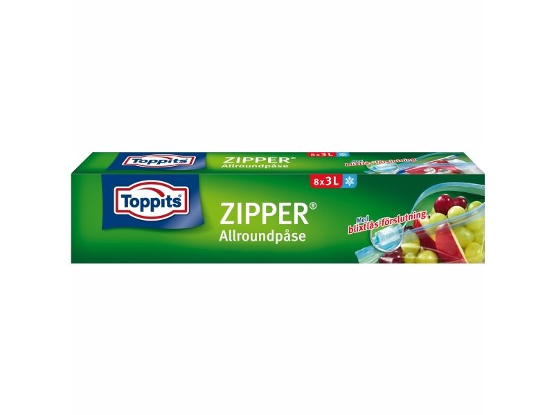 Toppits Zipper - Lynlåspose - 3 L (en pakke 8)