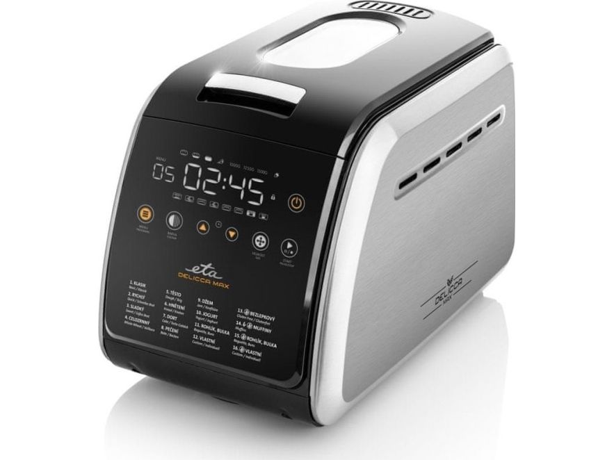 Discover the joy of home baking with the ETA Delicca II 7149 90030 breadmaker. Designed for convenience and versatility, this small kitchen appliance makes it easy to create a wide range of baked goods from the comfort of your home. Whether you're in the mood for classic bread, gluten-free options, or yogurt, the Delicca II has you covered with its 12 different programs and customizable settings. The touch-sensitive controls and digital display ensure a user-friendly experience, while the included accessories like a measuring cup, hooks, and baking pan equip you with everything you need to get started. Not only is it efficient with an 850 W power consumption, but it also operates quietly at 65 dB(A), making it perfect for any time of the day. The non-stick coating not only ensures easy release of your baked goods but also simplifies cleaning, making maintenance a breeze. Embrace the simplicity and satisfaction of baking with the Delicca II 7149 90030 breadmaker.