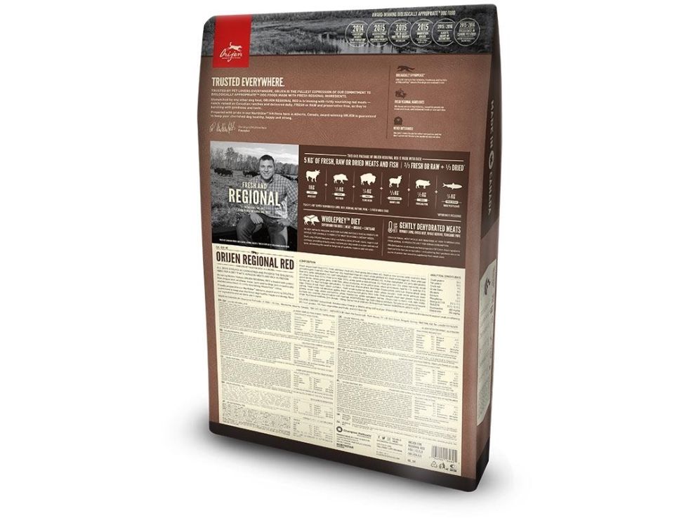 Ulig noget andet hundefoder, er hele 2/3 af kødet i ORIJEN FRISK (nedkølet, ingen konserveringsmidler), eller RÅ (lynfrosset, ingen konserveringsmidler), hvilket også inkluderer de første 10 ingredienser.