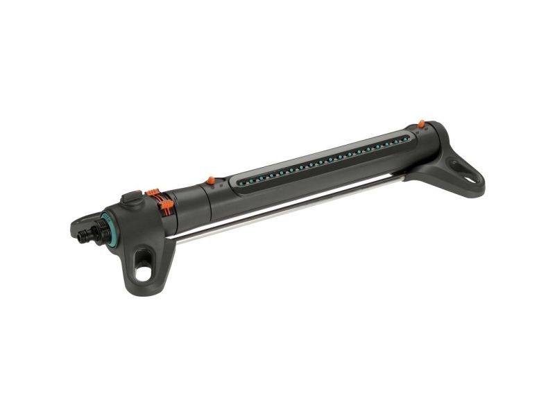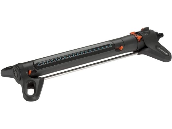 Større hagearealer er ikke noe problem for AquaZoom L fra GARDENA, ettersom vippevanneren er designet for arealer fra 28 til 350 m². I slike situasjoner er det selvsagt viktig at hagen vannes jevnt og ensartet. Vanningsanlegget takler disse utfordringene og mer til. Den jevne vanningen forhindrer også at det dannes små innsjøer på plenen. Nyt hver eneste bit av sommeren. Betjeningen av AquaZoom L er enkel og intuitiv. Ved hjelp av glidebryterne kan du stille inn rekkevidde (7-21 meter), bredde (4-17 meter) og vannmengde slik at det passer til plenen din. Du kan til og med velge å vanne bare halvparten av plenen, slik at vannet bare når de stedene du ønsker. De ekstra brede føttene gjør at AquaZoom står stødig på bakken. Den er solid bygget av materialer av topp kvalitet, noe som betyr at AquaZoom L er motstandsdyktig mot frost og UV-stråler. Den høye kvaliteten gjenspeiles også i fabrikkgarantien på 5 år, slik at du kan ha glede av vanningsanlegget i lang tid. Enkelt vedlikehold bidrar også til å sikre lang levetid. Dette inkluderer et innebygd filter i rustfritt metall i vanntilkoblingen som forhindrer at smuss kommer inn i vanningsanlegget. Filteret kan enkelt tas ut og rengjøres under rennende vann - uten problemer. Dysene på AquaZoom L er også enkle å rengjøre, siden de er laget av myk plast. Kalkavleiringer kan enkelt fjernes ved å gni fingrene over dem.