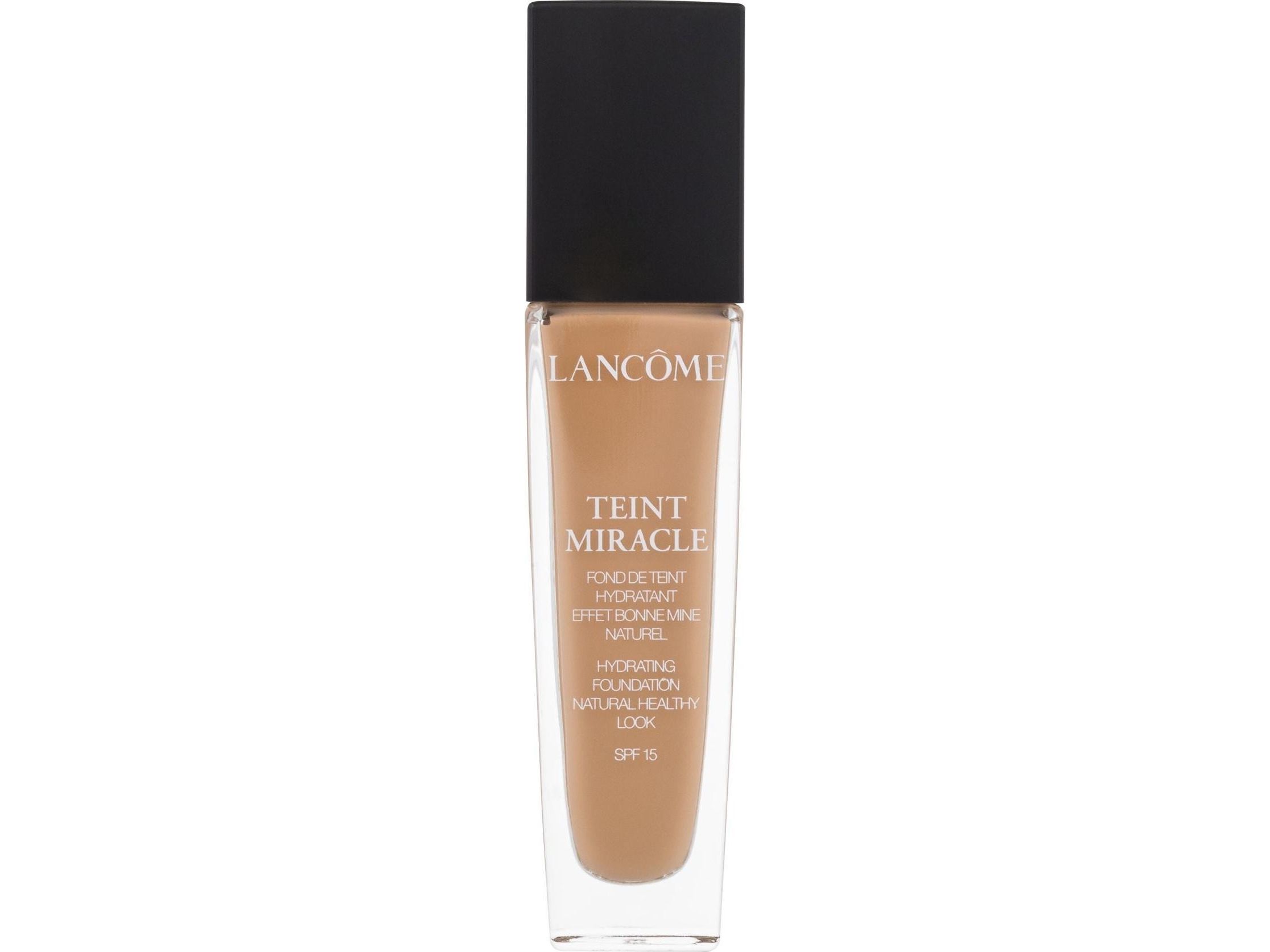 Lancome Face Make up Teint Miracle Hydrating Foundation SPF15 Deze licht dekkende foundation is voorzien van een heldere finish De foundation hydrateert de huid de hele dag door en geeft schoonheid en een stralende teint Na twee weken is de huid zichtbaar beter gehydrateerd verkwikt gladder en helderder De foundation is voorzien met een SPF 15 is geschikt voor de gevoelige huid is niet vet en niet comedogeen Kleur Beige Noisette