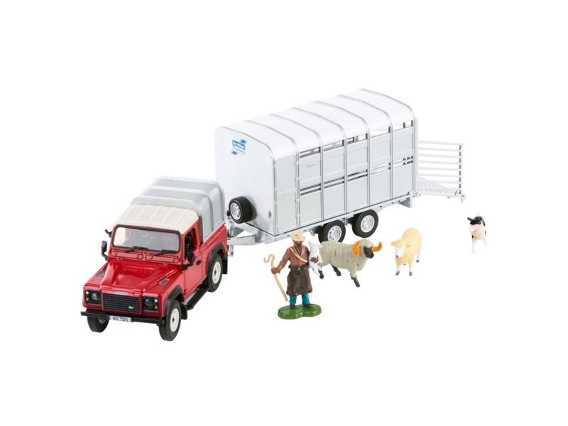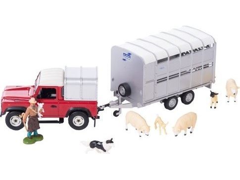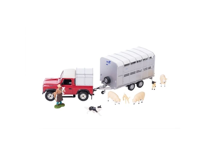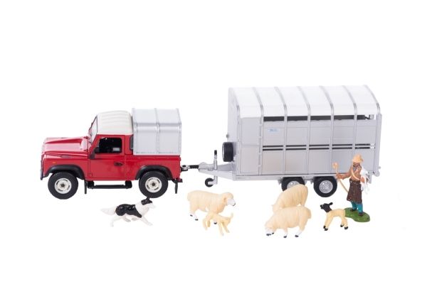 Vroom, vroom.. Følg med alle minibønder, byggherrer og konstruksjonsaspiranter der ute - utforsk verdenen av de kuleste traktorene, kjøretøyene, redskapene og tilbehør. Britains har lansert flere fantastiske lekekjøretøy som de yngste kan glede seg over. De tunge kjøretøyene har en praktisk størrelse som inviterer til timer med historiefortelling, læring og spenning! Med den røde Land Roveren, tilhengeren og sauene er det gode muligheter for moro og lek. Få gjeterhunden til å hjelpe sauene inn i hengeren, og kjør dem til utstilling. Pass på hull i veien når du kjører dit!