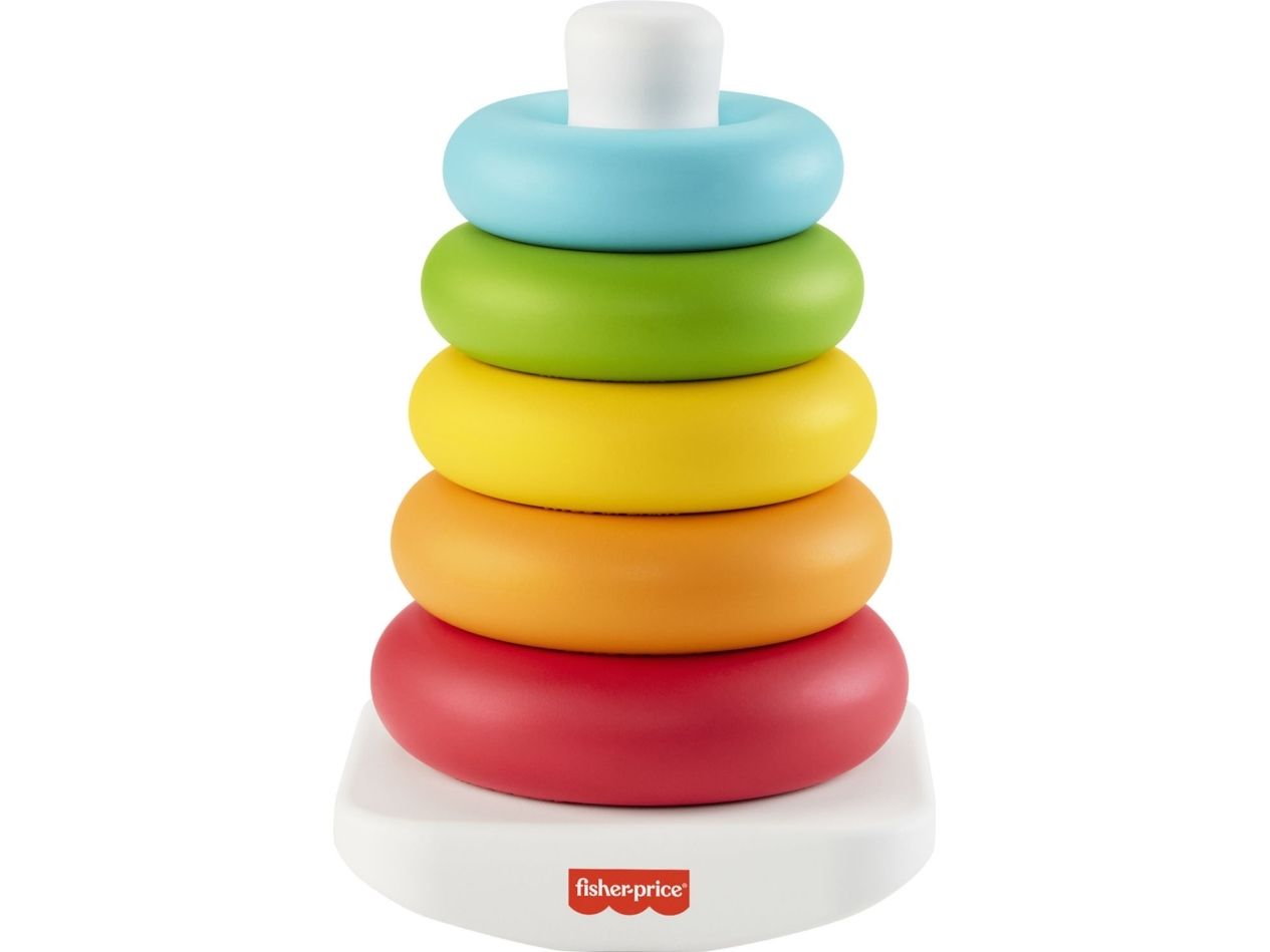 Endelig … ringen over alle ringer. Denne Fisher-Price Rock-a-Stack-leken er laget av plantebaserte materialer* og byr på klassisk stabelmoro for babyer. Den har en base som vugger, og fem fargerike ringer som de små hendene kan gripe og stable. Stabling hjelper babyen med å utvikle øye-hånd-koordinasjon og introduserer dem for begrepet relativ størrelse, mens de lærer å sortere og stable fra den største til den minste! (*Leke laget av minst 90 % etanol fra sukkerrør.)