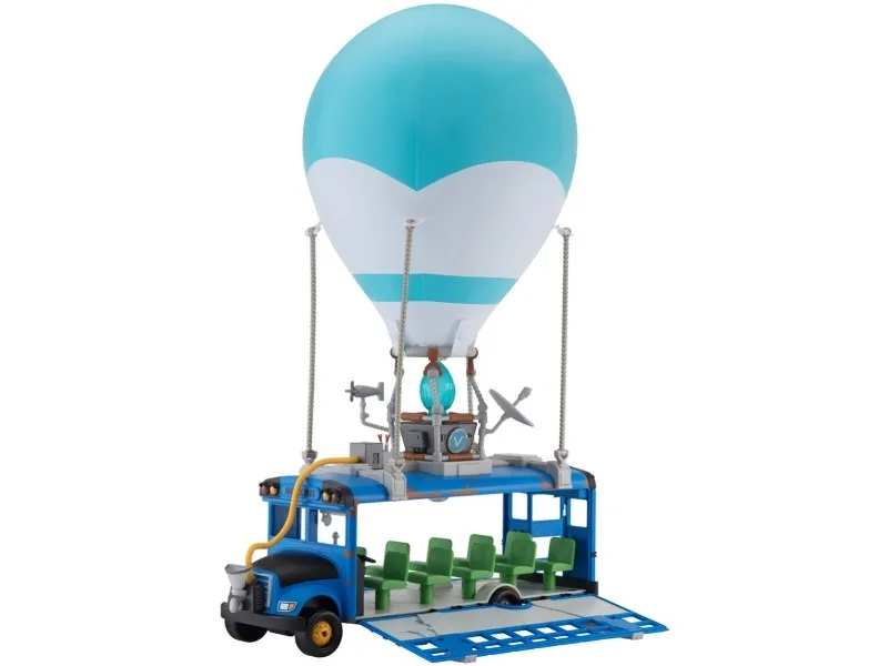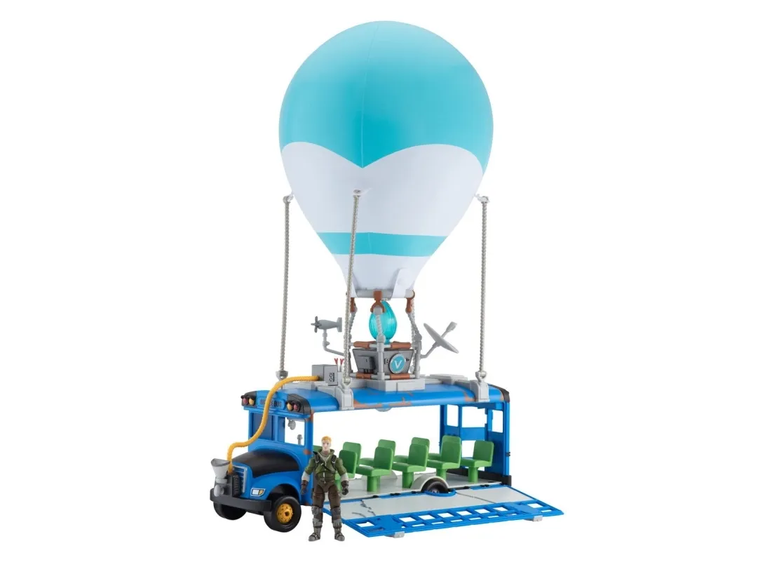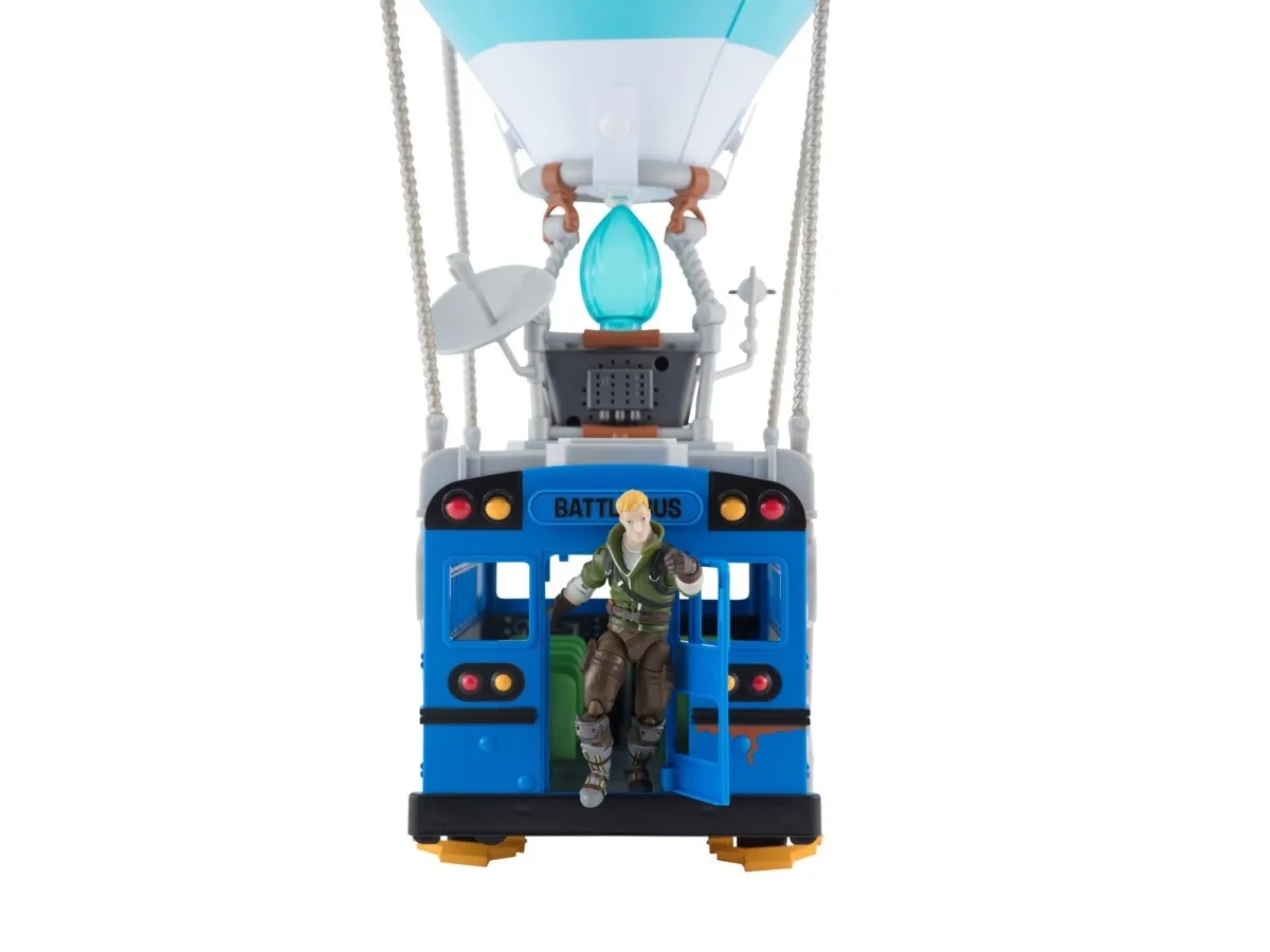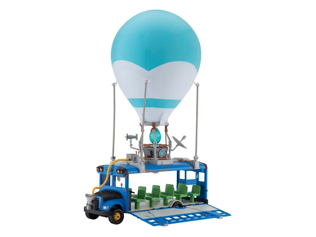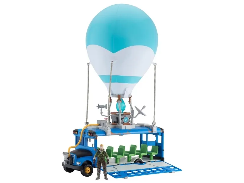 Where are we dropping boys? Hopp på din Fortnite Battle Bus og dropp ned hvor som helstl! Sett fyr på flammen, og la ballongen stige til værs og bli med din squad – tut i hornet, og ikke glem å takke bussjåføren før du dropper! Settet er komplett med Fortnite Battle Bus, ballong til å blåse opp og en 10 cm figur.