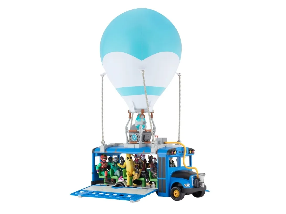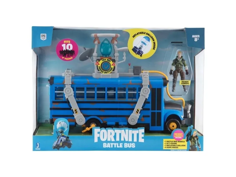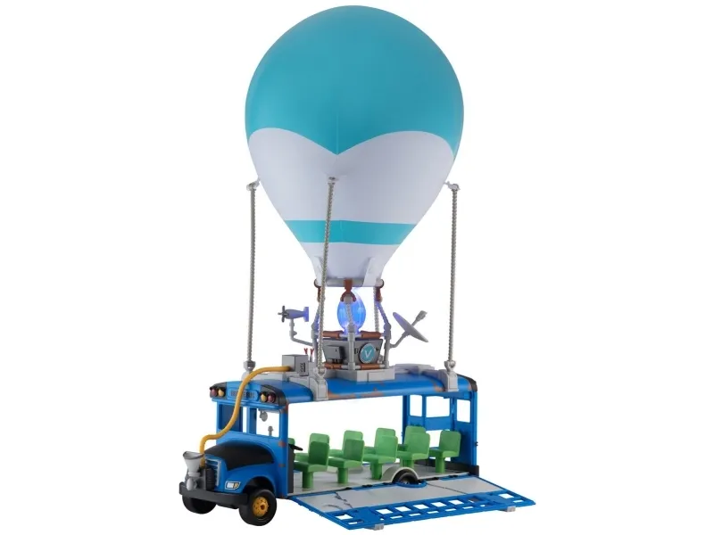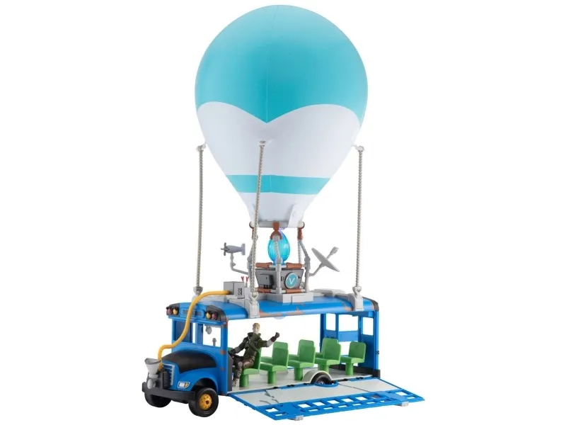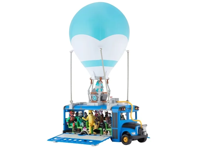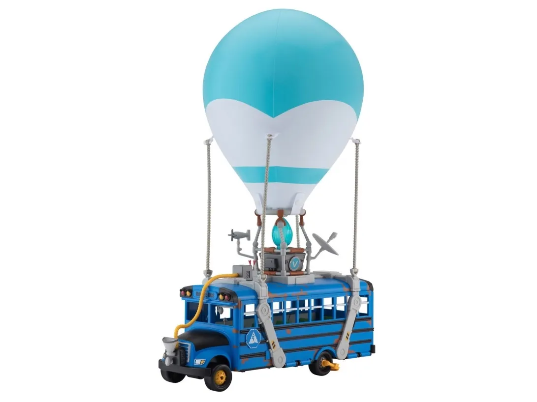 Where are we dropping boys? Hopp på din Fortnite Battle Bus og dropp ned hvor som helstl! Sett fyr på flammen, og la ballongen stige til værs og bli med din squad – tut i hornet, og ikke glem å takke bussjåføren før du dropper! Settet er komplett med Fortnite Battle Bus, ballong til å blåse opp og en 10 cm figur.