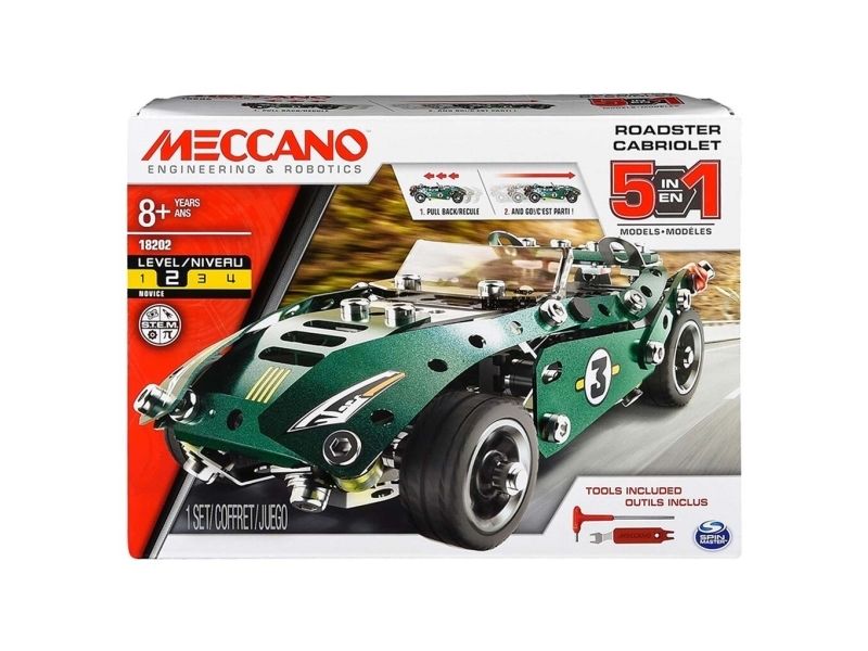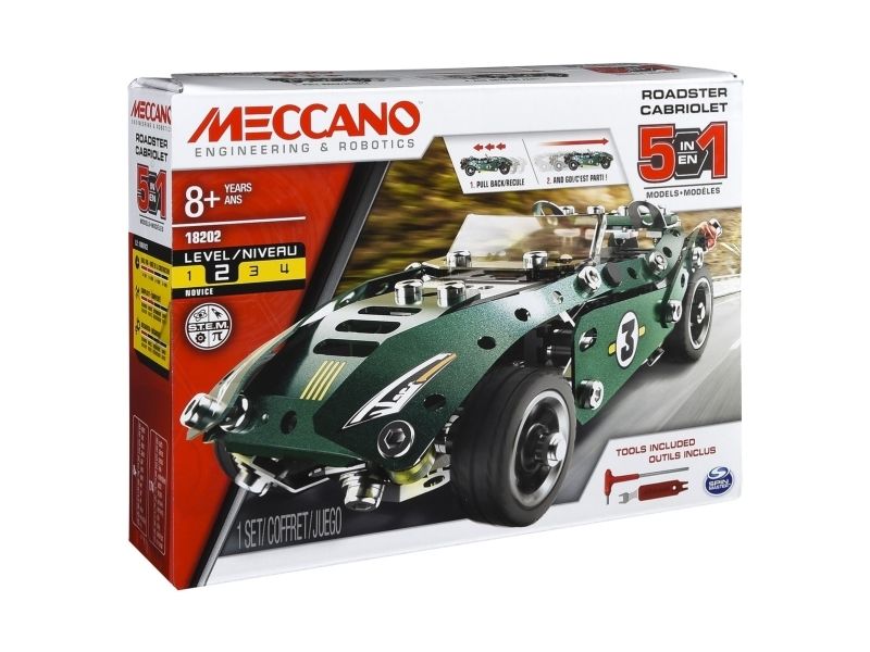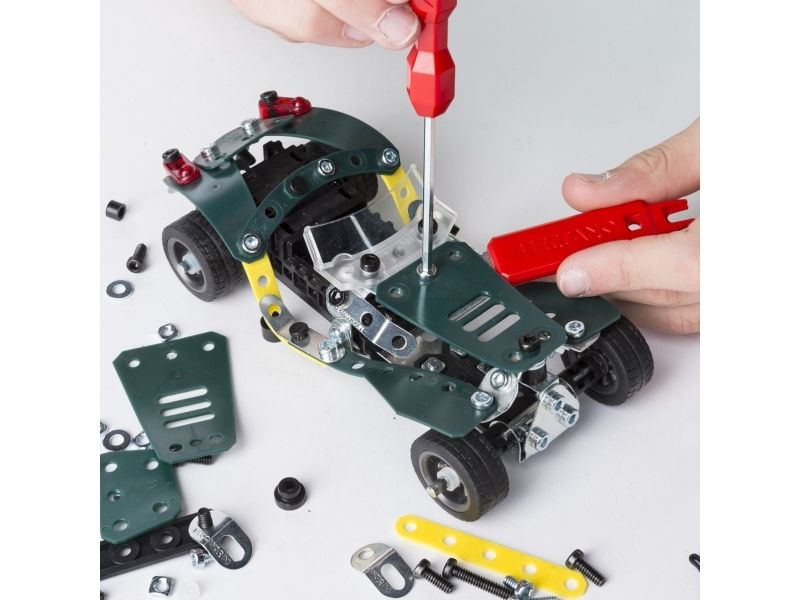 Slipp fantasien løs og la den yngste mekanikeren bygge, utforske og ha det gøy med dette Meccano settet. Dette bilsettet lar barnet sette sammen delene og bygge 5 forskjellige kjøretøy. Settet inneholder 174 deler, motor, verktøy og instruksjoner. Alder 10+