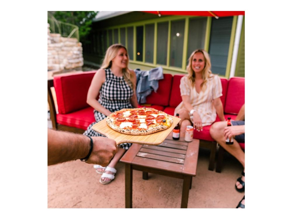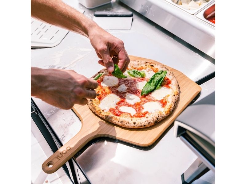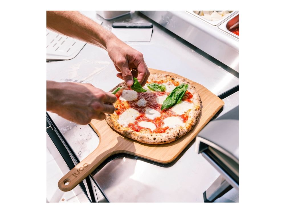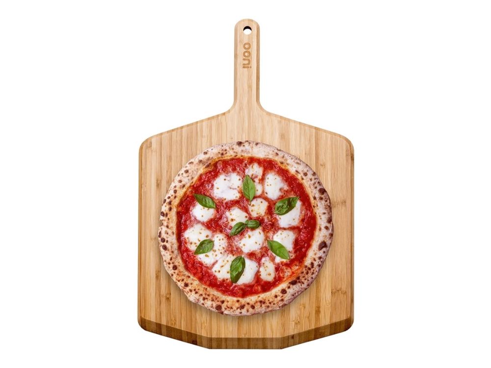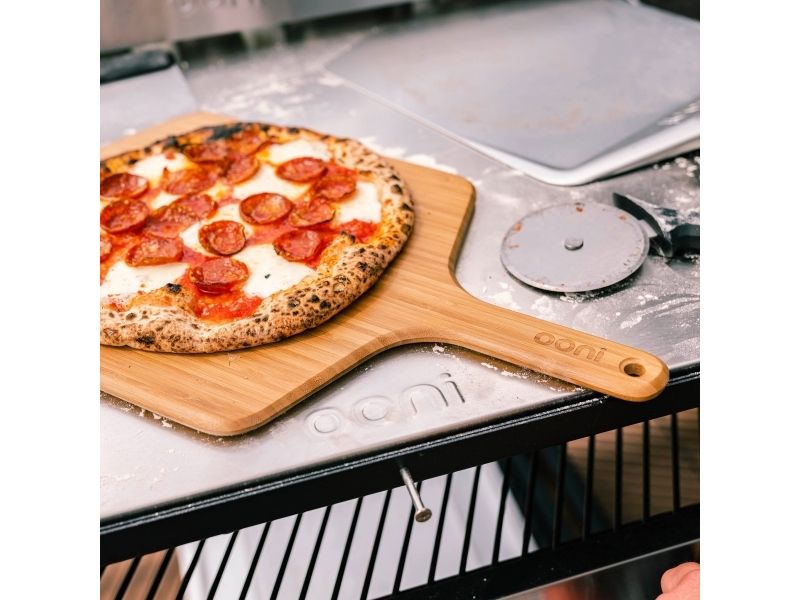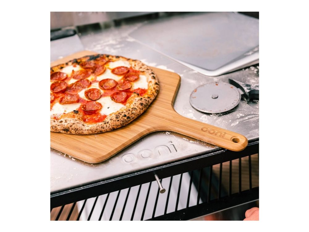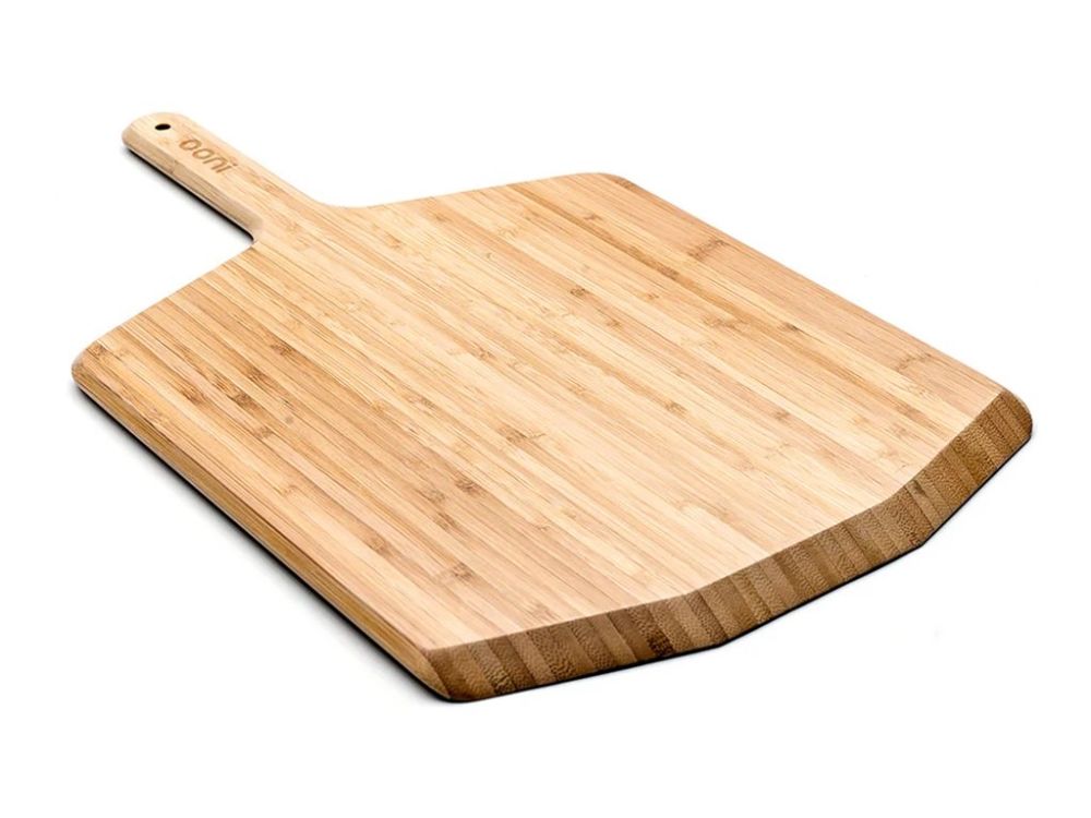 Launch pizzas with ease using the lightweight, durable Ooni Bamboo Pizza Peel and Serving Board. Featuring a moisture-resistant, smooth bamboo surface to prevent pizza dough from sticking, it also doubles up as a board for serving and slicing pizzas.