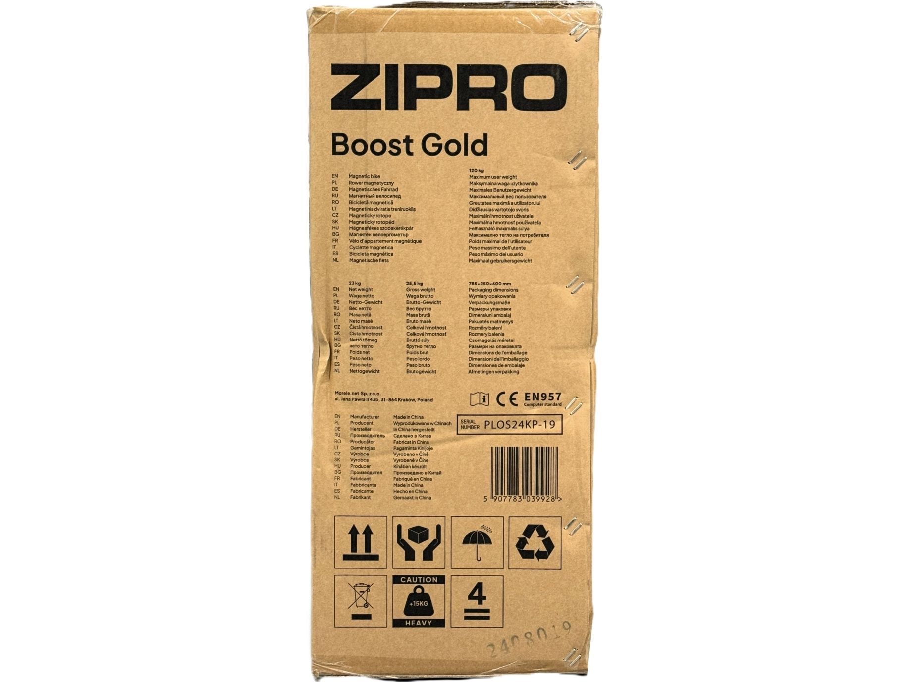 TEKNISKE SPECIFIKATIONER BOOST GULD • EAN: 5907783039928 • Transportmål [mm]: 785x250x600 • Nettovægt [kg]: 23 • Modstandssystemet: Magnetisk • Modstandsjusteringsniveauer: 8 • Højdejusterbar sadel: 54-69 cm fra pedalerne og 80-94 cm fra jorden • BRUGERENS VÆGT Maksimum [kg]: 120