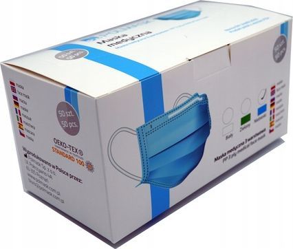 Polmask medisinsk engangsmaske 3-lags med filter blå 50 stk.