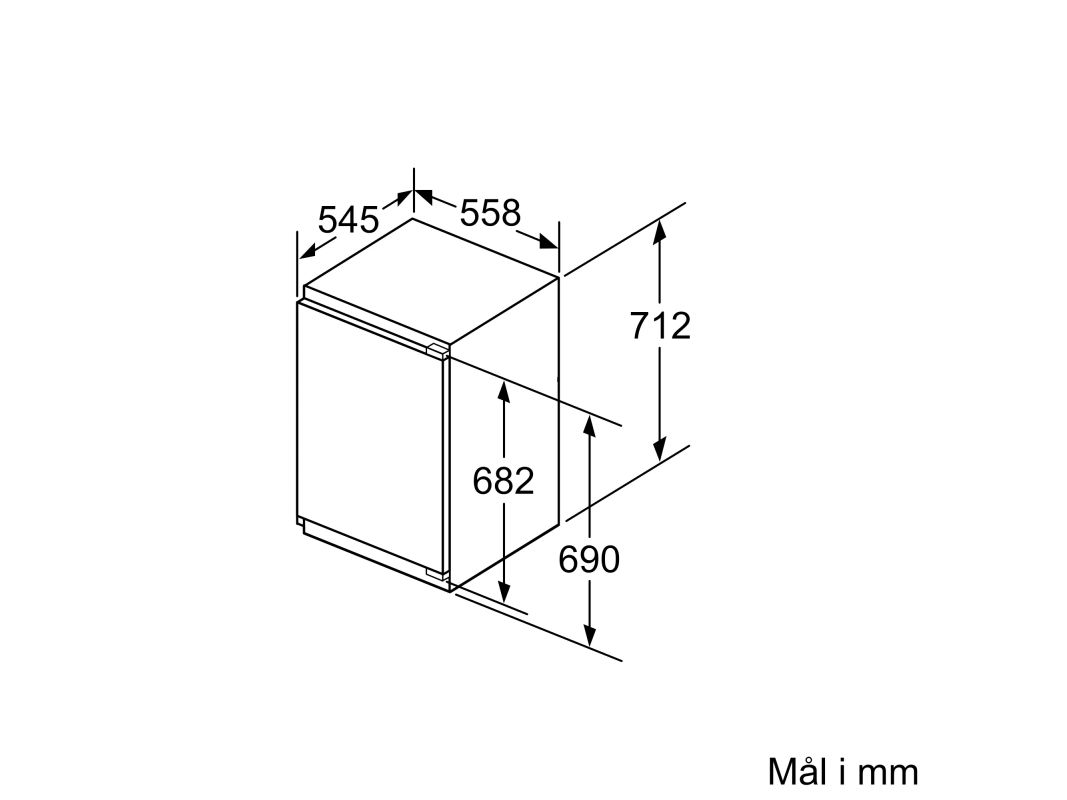 Modellnummer: GI11VADE0 Type: Fryseskap Type installasjon: Fullt integrert Dørhengsel: Høyrehengslet, reversibel Energiklasse: E Gjennomsnittlig årlig energiforbruk i kilowattimer per år (kWh/år): 167 kWh/år Fryseromets totale volum: 72 liter Utslipp av luftbåren støy: 36 dB(A) re 1pW Klasse for utslipp av luftbåren støy: C Temperaturvisning, fryser: Nei Lys: Nei Topplastingsalternativ: Ikke mulig Frostfritt system: Nei Høyde: 712 mm. Bredde: 558 mm. Dybde: 545 mm. Nisjemål (H x B x D): 72 x 56 x 55 cm. Dimensjon på pakket produkt: 790 x 620 x 640 mm. Nettovekt: 35,6 kg Tilkoblingseffekt: 90 W Strømstyrke: 10 ampere Frekvens: 50 Hz Lengde på strømledning: 230 cm Dørhengsel: Høyrehengslet, reversibel Avrimingsprosess: Manuell Advarselssignal / funksjonsfeil: Visuelt og akustisk Dørlås: Nei Antall skuffer/kurver: 3 Tilbehør som følger med: 1 x Isterningskubebrett