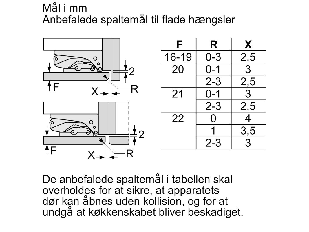 Flatt hengsel Dette apparatet er utstyrt med et flatt hengsel!! Med Door-on-Door-prinsippet oppnår du full integrering!