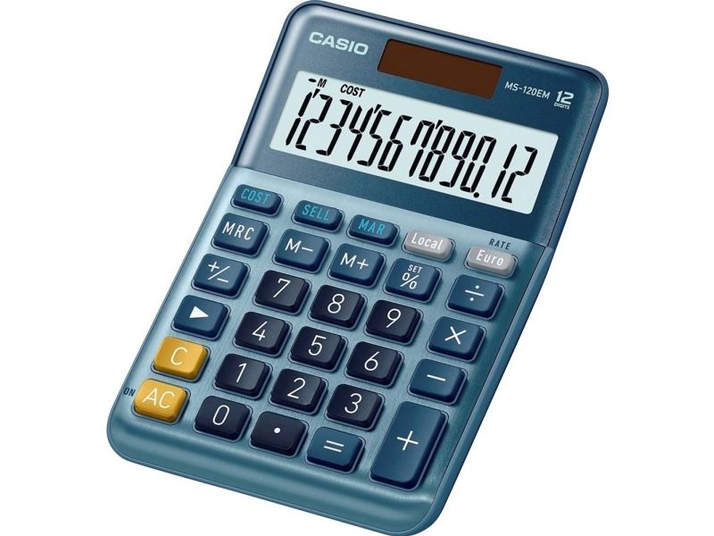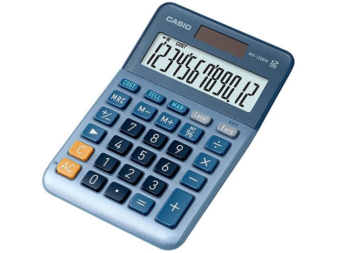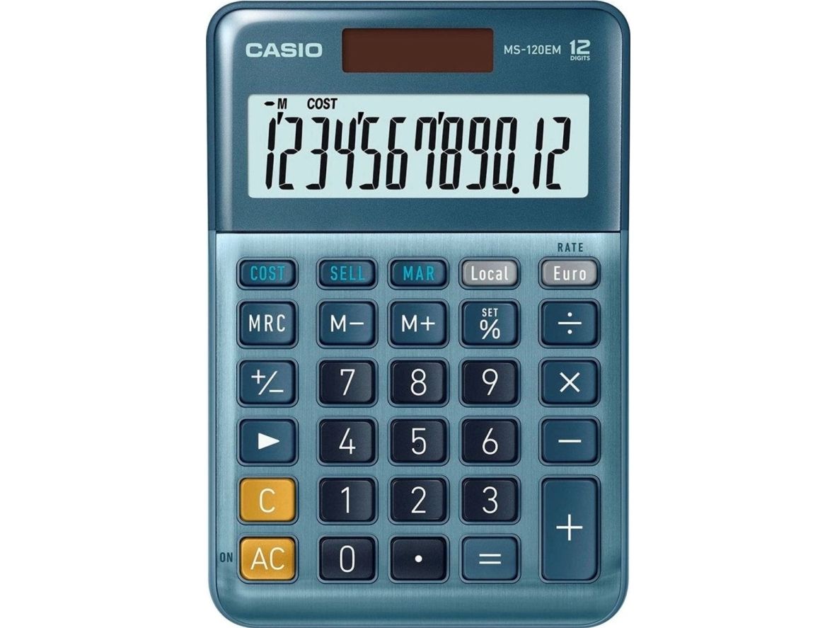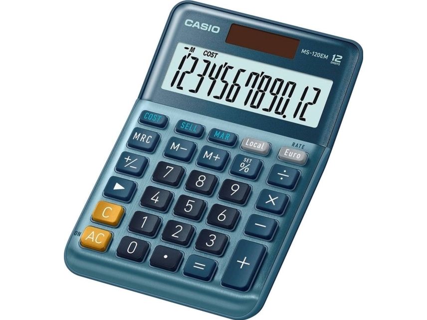 Casio MS-120EM - Skrivebordskalkulator - 12 sifre - solcellepanel, batteri - blå