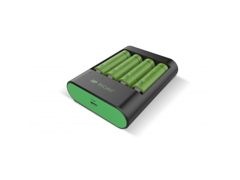 GP Hurtiglader inkl. micro-USB kabel, vægadapter og 4 stk. 2.600mAh AA genopladelige batterier.