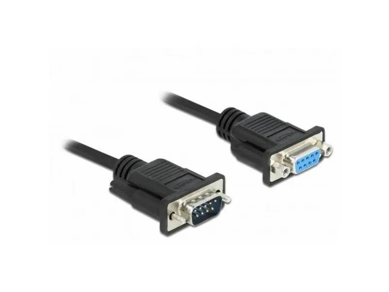 Delock serielt kabel RS-232 D-SUB9-stik til bøsning med smalt stikkabinet 2 m.