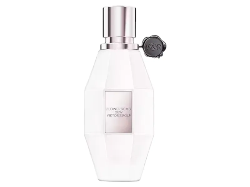 Flowerbomb Dew is a feminine perfume for women This scent opens with top notes of juicy pear citrusy bergamot musk mallow and dew drop for a sweet muskiness At the heart notes of rose and iris add a powdery floral tone that is supple and gently clings to the skin