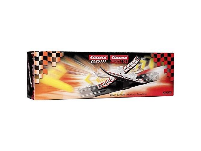 Mere sjov på Carrera GO!!! Bane med fantastisk action-funktioner som for eksempel vippen! Bevis din fingerspidsfornemmelse, når du drejer dit køretøj over forhindringerne.