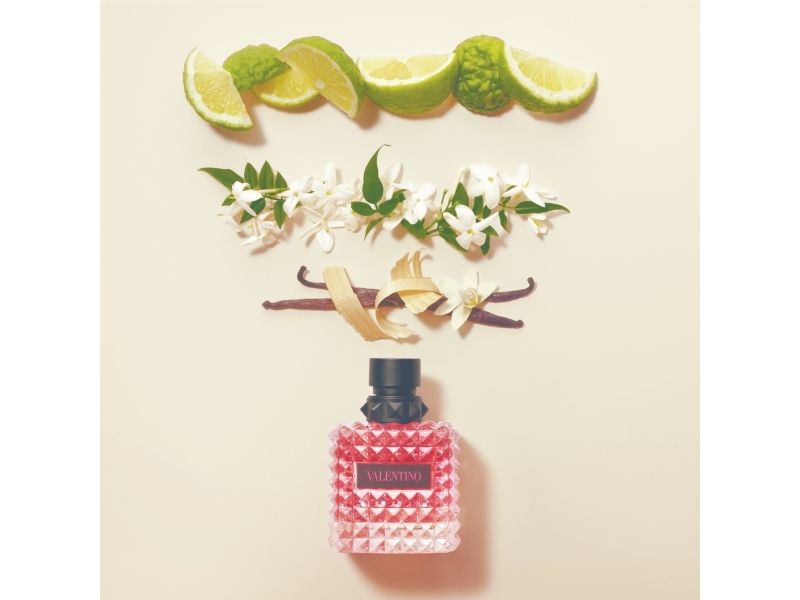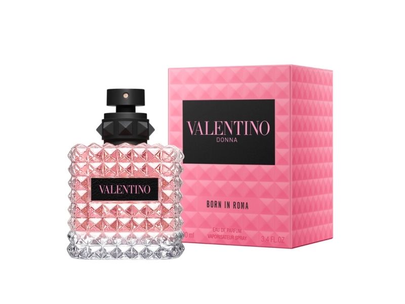 The bottle is designed with the iconic Valentino stud, inspired by Roma architecture which is the signature of Valentino Couture.