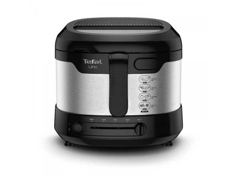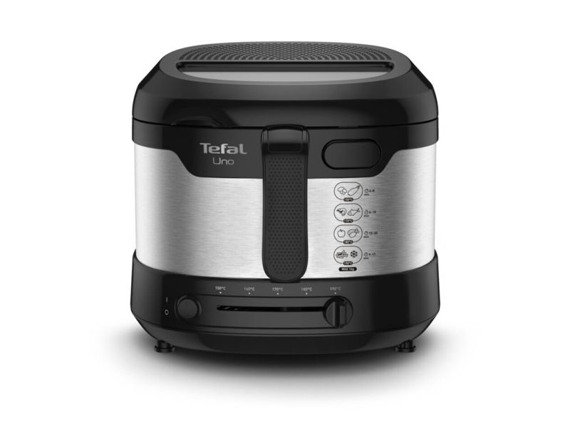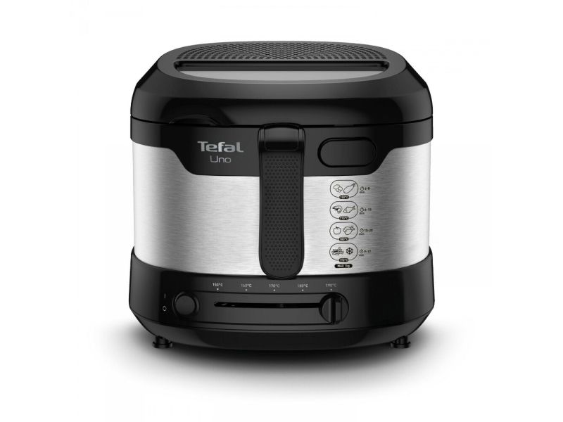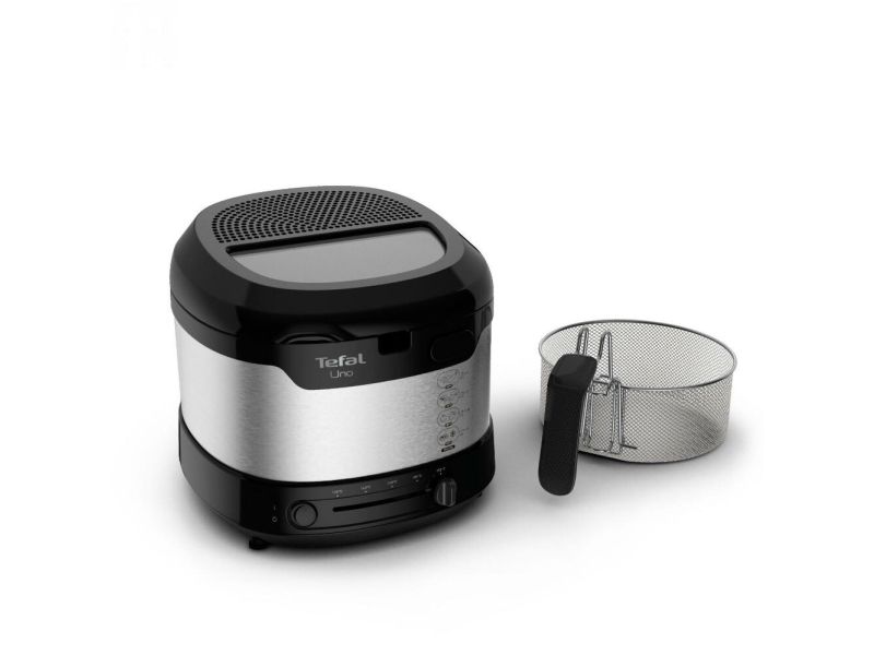 With the Tefal Uno electric deep fryer, enjoy a compact fryer with a large enough capacity for the whole family! Perfect for a family of four thanks to its generous 1 kg capacity, its compact dimensions with foldable handle take up minimal space, for easy storage in any kitchen. Equipped with convenient features including a large viewing window, Uno is also equipped with an adjustable thermostat (150 °C to 190 °C) for great cooking versatility.