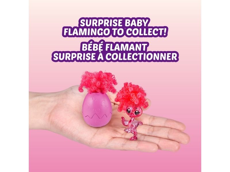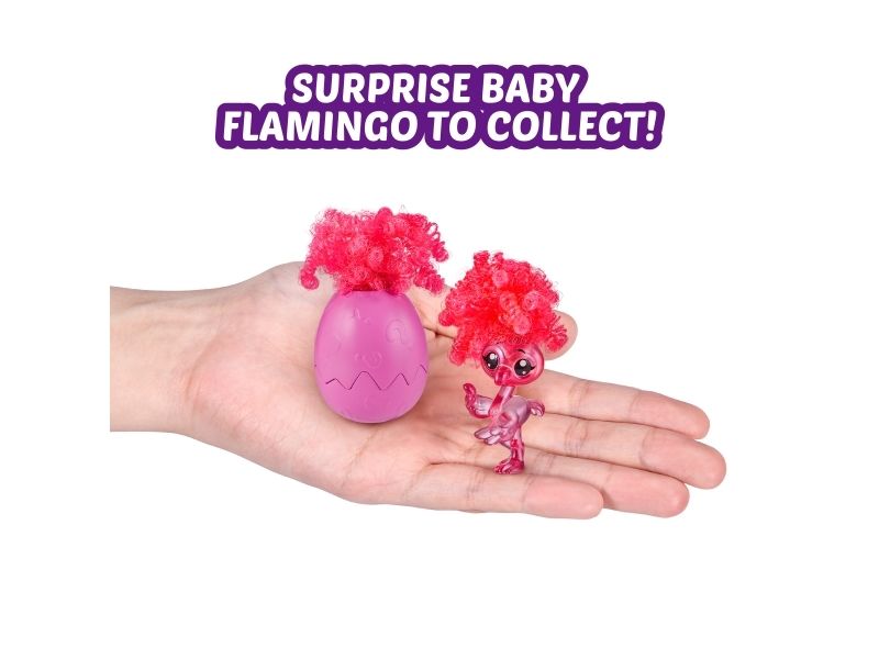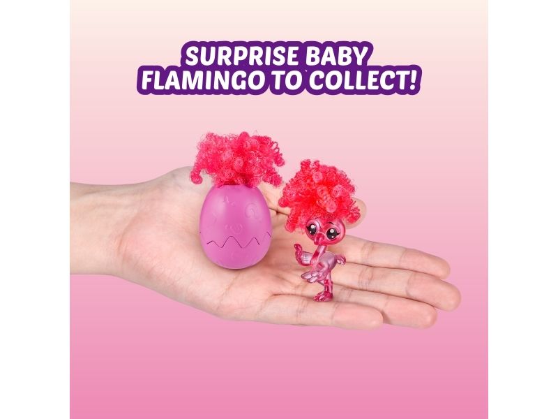 2. OVERRASKELSE: BABYFLAMINGO Å SAMLE: Disse babyflamingoene er like funky og morsomme som Frankie! Det er to babyflamingoer å samle, som begge har en uvanlig funky frisyre og gjemmer seg inne i de gjenbrukbare eggene deres.