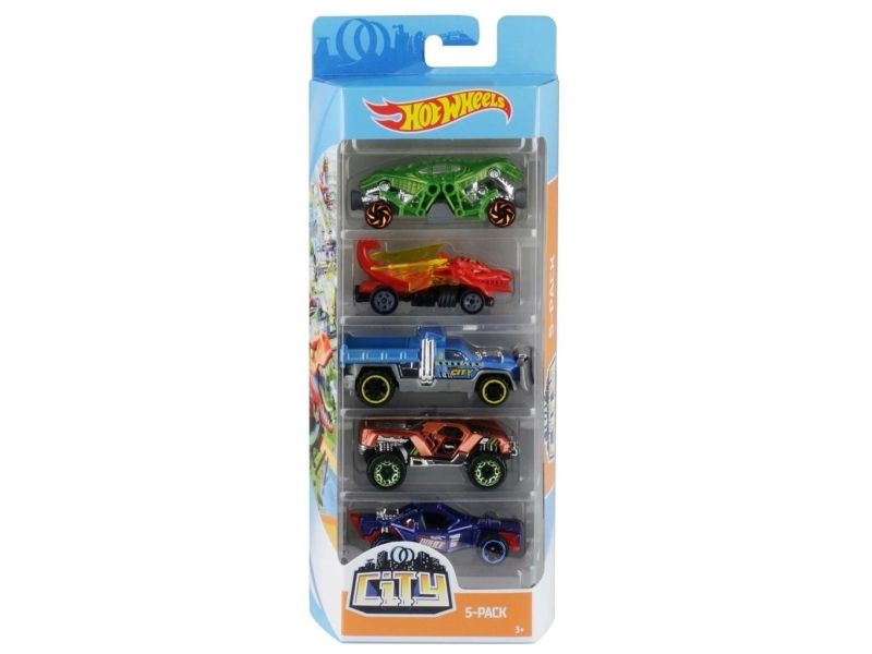 Speed into an instant Hot Wheels™ collection with a race-ready pack that features five highly detailed die-cast vehicles. Hot Wheels™ 5-Car packs deliver five times the amped up action and are perfect for car enthusiasts of all ages. With a cool unifying theme, authentic details and eye-catching decos, these packs make a great gift for kids and collectors alike. Actual vehicles shipped may differ from those pictured.