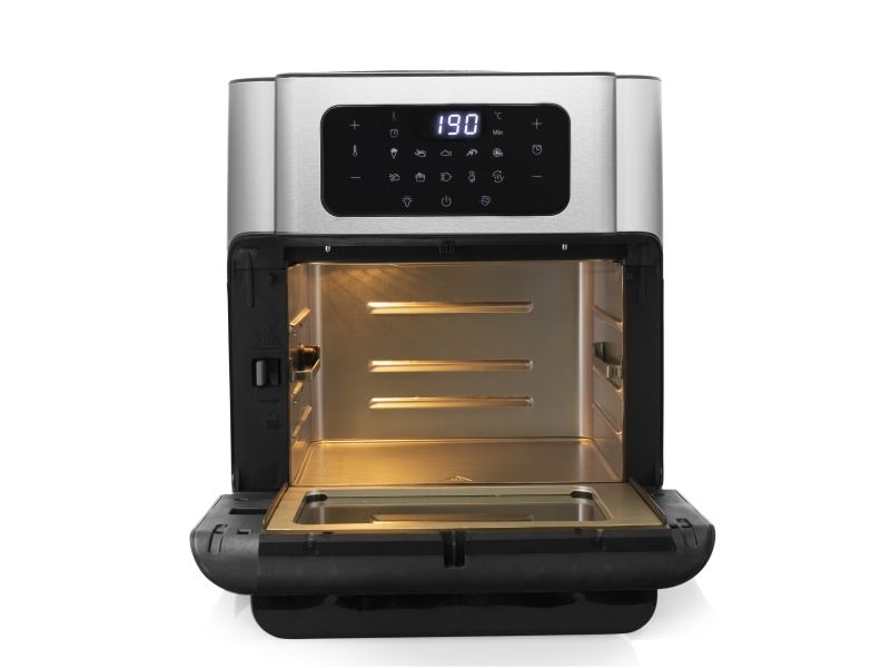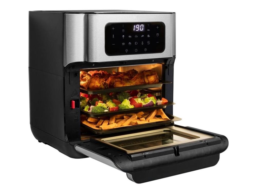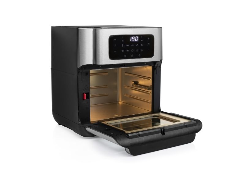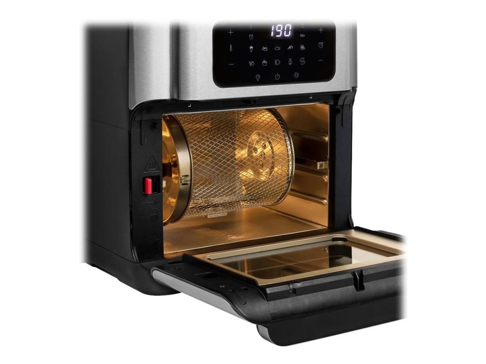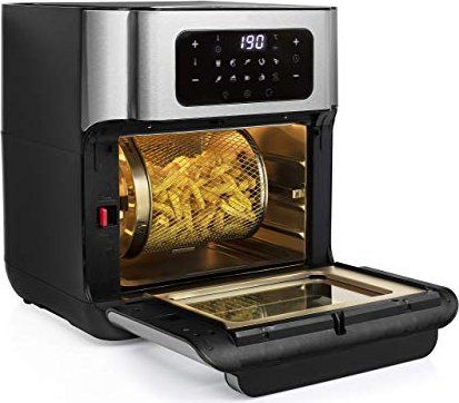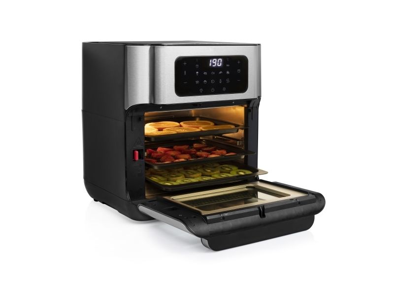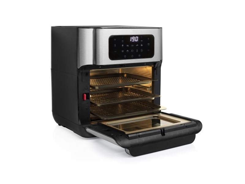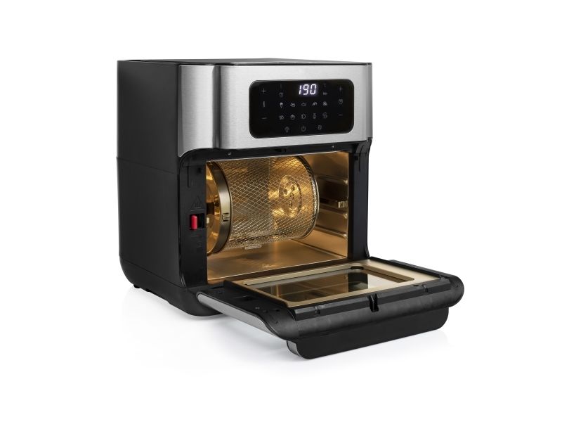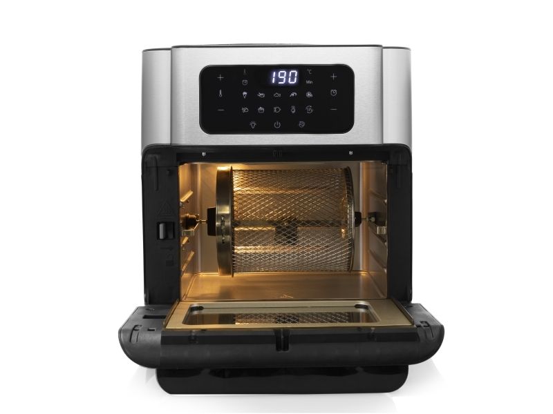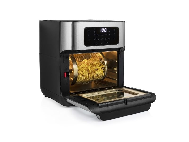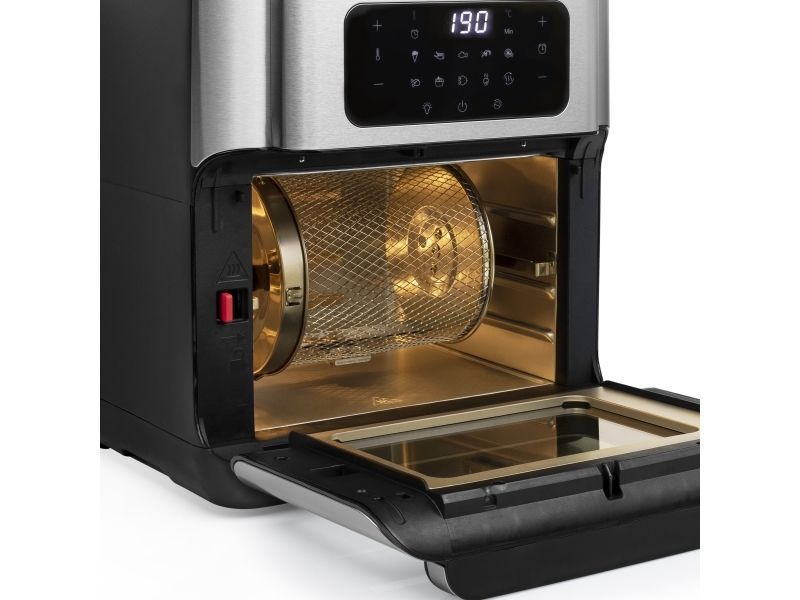 Are you in doubt whether you should choose an air fryer or a mini oven? The Princess 182065 Aerofryer Oven is the perfect device for you. The luxurious combination between an air fryer and a mini oven can grill, bake, fry, roast, and even dehydrate. The rotating mesh basket makes sure you will get the most crispy chips ever and does so without you having to shake every 5 minutes. Furthermore, you can bake loads of snacks on the 3 baking plates with a special air convection technology.