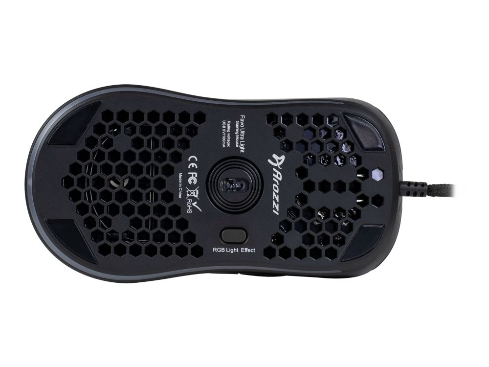Looking for a new mouse that won’t weight you down? The Arozzi Favo Ultra Light Gaming Mouse will raise your game to a new level! Built for speed, control and comfort with a weight of only 74 g, the Arozzi Favo is one of the lightest gaming mouses on the market! The Arozzi Favo Gaming mouse is equipped with Pixart 3389 sensor, Omron 20M switches and 7 buttons. Arozzi Favo comes also with customizable RGB lightning, both in bottom panel and inside logo, easily controlled direct on the mouse.
