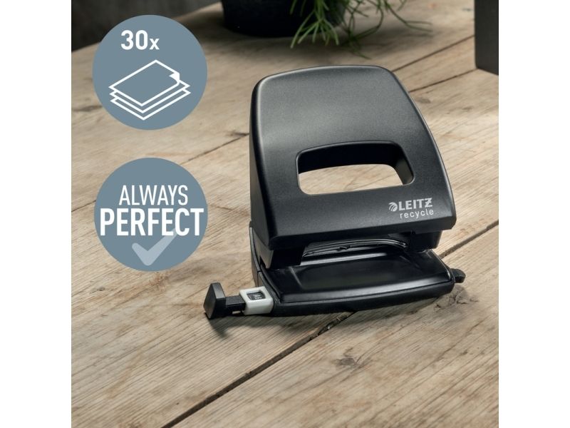 Hulapparat Leitz Recycle 2-huls sort til 30 ark