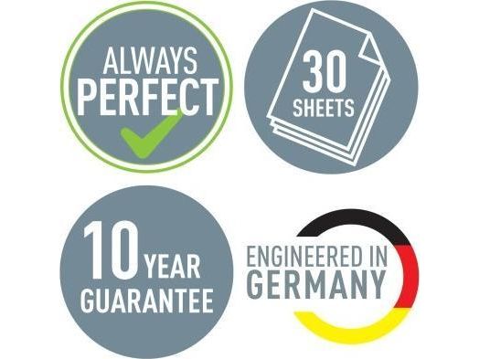 • Stærk papirguide med tydelige markeringsformater og visningsvindue for perfekt papirjustering.