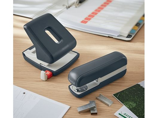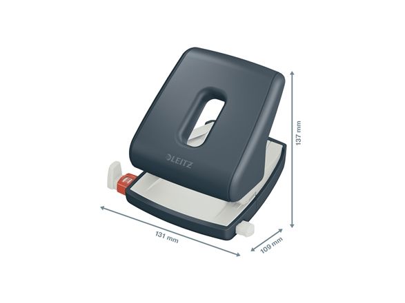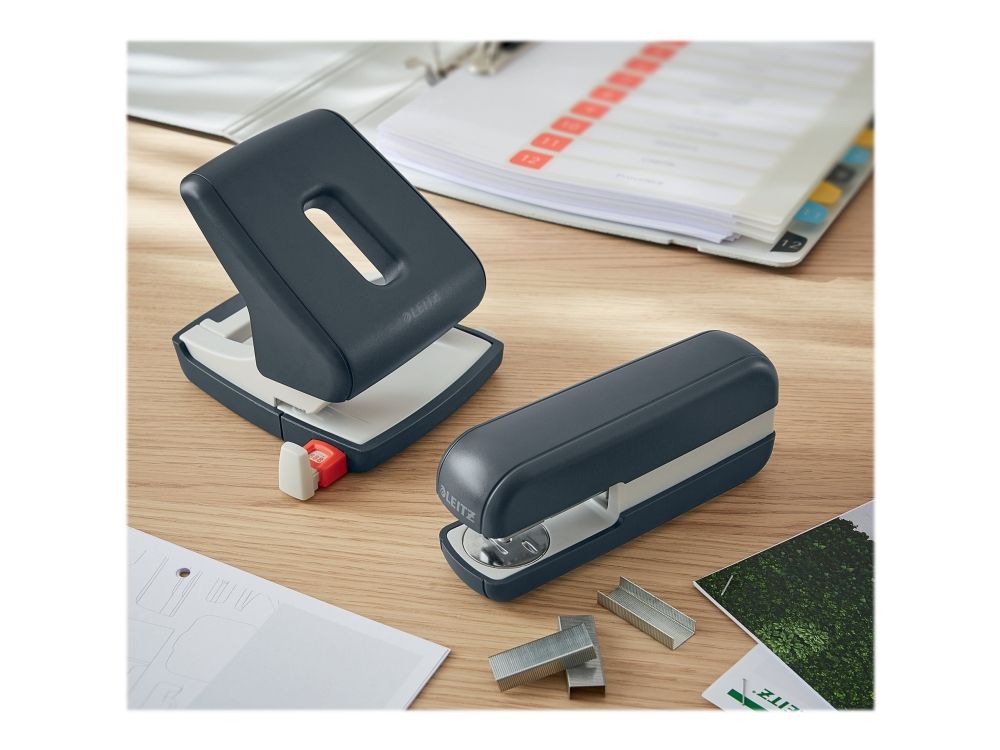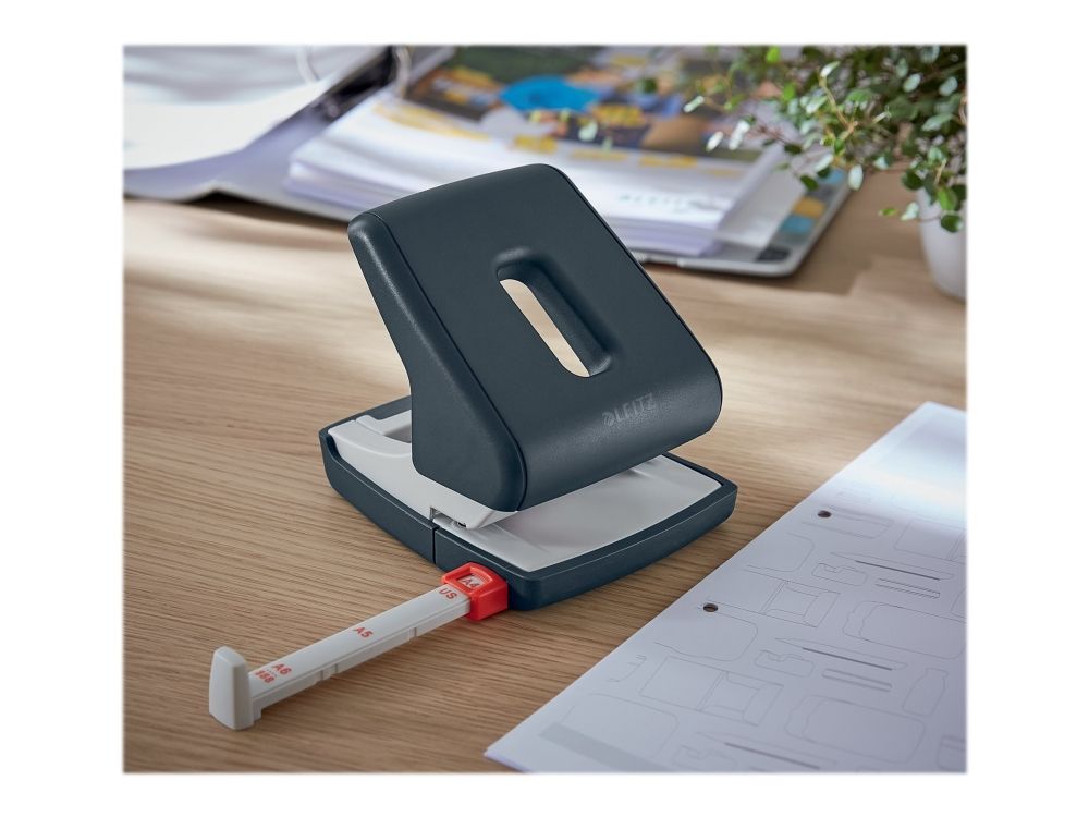 • Håndtag kan låses så hulapparatet let kan opbevares i f.eks. Leitz Cosy skuffekabinet 5357 eller Leitz Cosy opbevaringsboks 6125